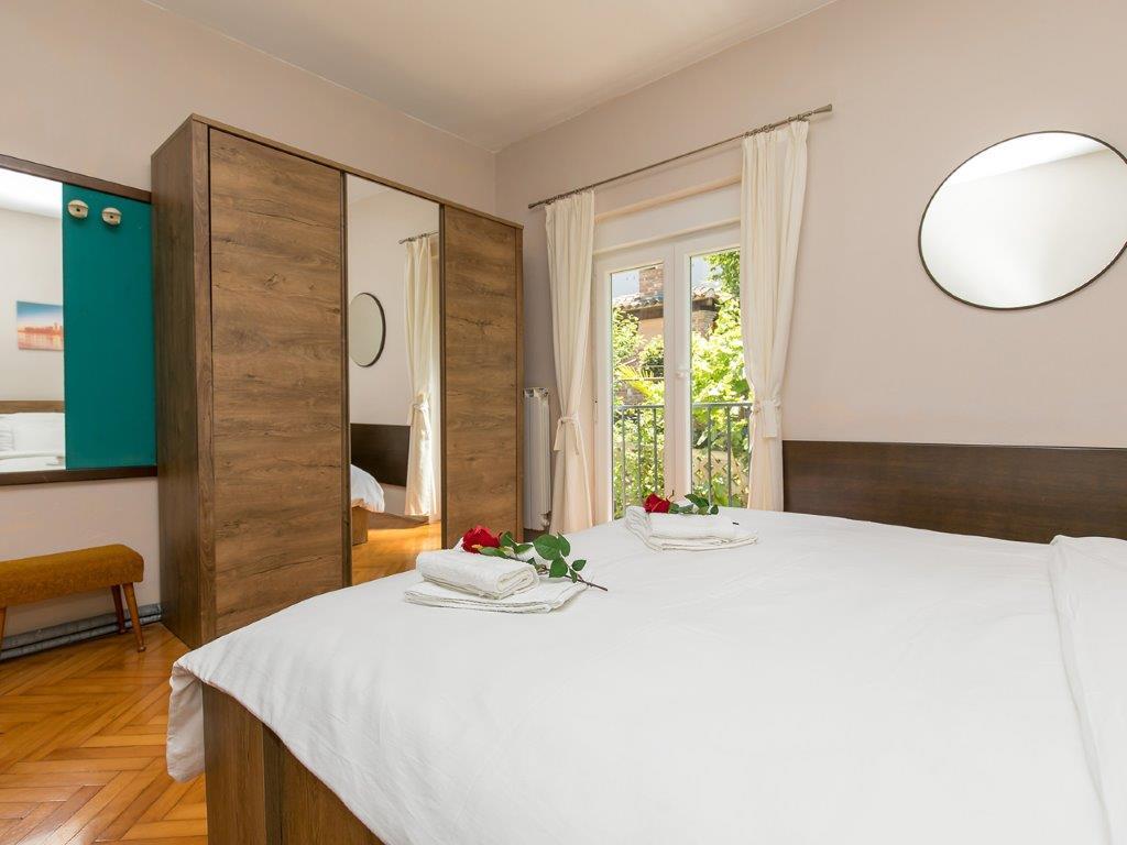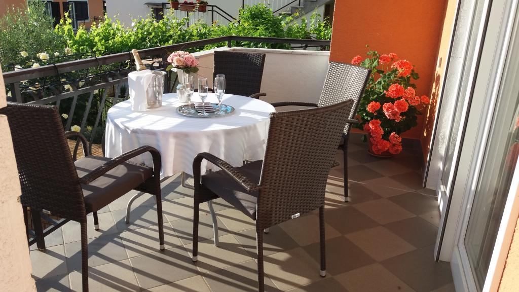 Wij zijn gevestigd in een rustige omgeving in de directe omgeving van de stad. Het appartement heeft 3 slaapkamers met tweepersoonsbedden, keuken, eetkamer, hal en 3 badkamers met douche, toilet en bidet. Het appartement heeft alles wat u nodig heeft om van uw vakantie een echte vakantie te maken. Alle bedlinnen is aanwezig evenals compleet eet- en drinkgerei, koelkast, koffiezetapparaat, elektrisch fornuis, magnetron, tv met satellietontvangst en u heeft ook gratis toegang tot internet met onbeperkt gebruik. Voor het appartement is er een groot terras met een tafel en stoelen en ligstoelen. Achter het appartement is een waar paradijs, in de schaduw heb je een grote tafel en kun je gebruik maken van de grill, terwijl de kinderen vrij kunnen spelen op het groene gras. Er is gratis privéparkeergelegenheid voor het huis. In de buurt, op 50 m van het appartement, heb je een grote supermarkt, restaurants, klinieken, en je hebt 400 m naar het centrum, evenals naar het eerste strand. Je hebt natuurlijk geen auto nodig, want je loopt er in 7-8 minuten naartoe.