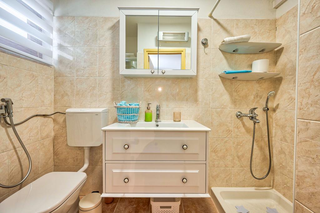 Appartement DONATELLA ligt buiten het centrum van Posedarje, aan de 3 zeeën Karin, Novigrad en de Adriatische Zee. Gelegen op de eerste rij aan zee, met directe toegang tot een schaduwrijk en goed onderhouden geplaveid strand en pier. Het is mogelijk om een kleinere boot voor anker te laten gaan. De zee is ideaal voor lange zwempartijen en ontspanning. Er zijn 4 ligstoelen met strandlakens op het strand aanwezig. Het overdekte terras van 32m2 en het appartement van 47m2 liggen op slechts 5 meter van de zee! Naast het terras bevindt zich een buitendouche met warm water. Gratis parkeerplaats, overdekt met luifels, voor 3 auto's. Het centrum en de winkels liggen op een kilometer afstand. Paden voor recreatie en het uitlaten van huisdieren bevinden zich op een afstand van ca. 200 meter. Het Nationaal Park Paklenica ligt op ongeveer 25 km van het appartement en is een wereldberoemde plek voor klimliefhebbers. Het Nationaal Park Krka ligt op een uur rijden. Het Nationaal Park Plitvicemeren ligt op 2 uur rijden. Het Nationaal Park Kornati ligt op een paar uur rijden van Zadar, waar u met talloze excursieboten naartoe kunt varen. De heuvel Čelinka in Posedarje, met zijn indrukwekkende kruisweg, 14 staties en het Laatste Avondmaal, biedt een prachtig panorama over Posedarje en alle drie de zeeën.