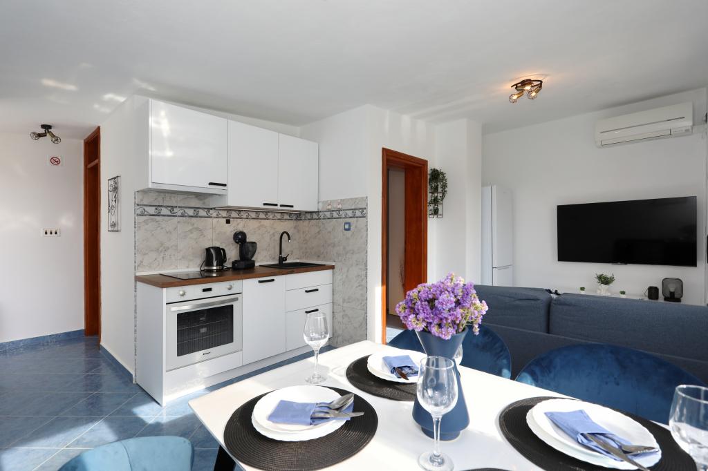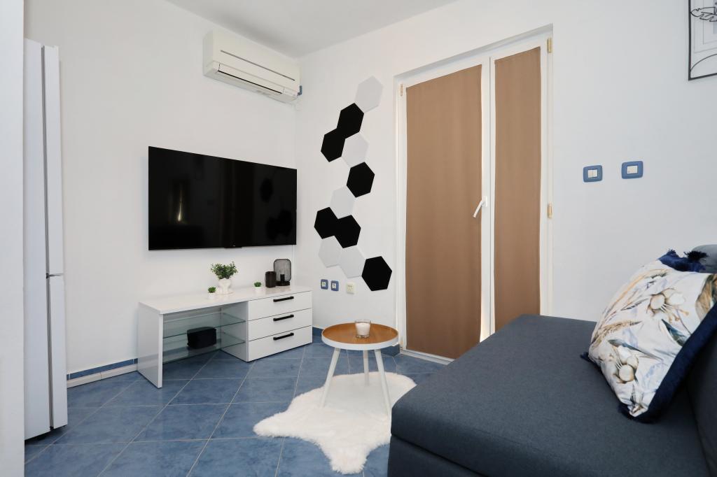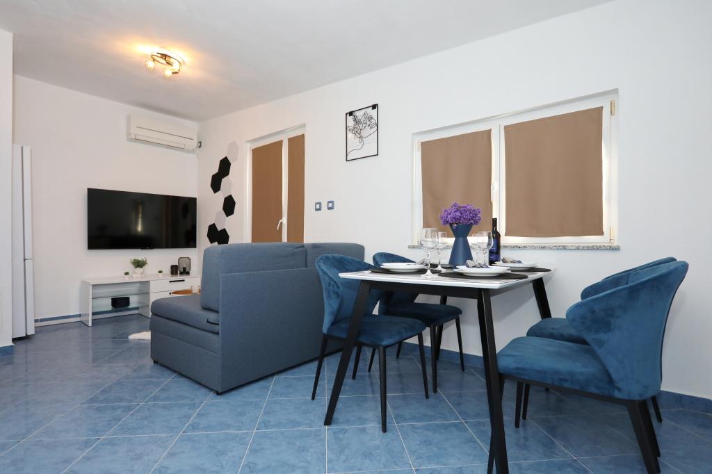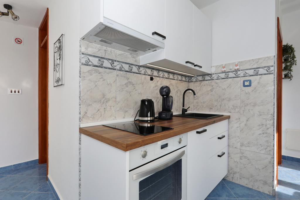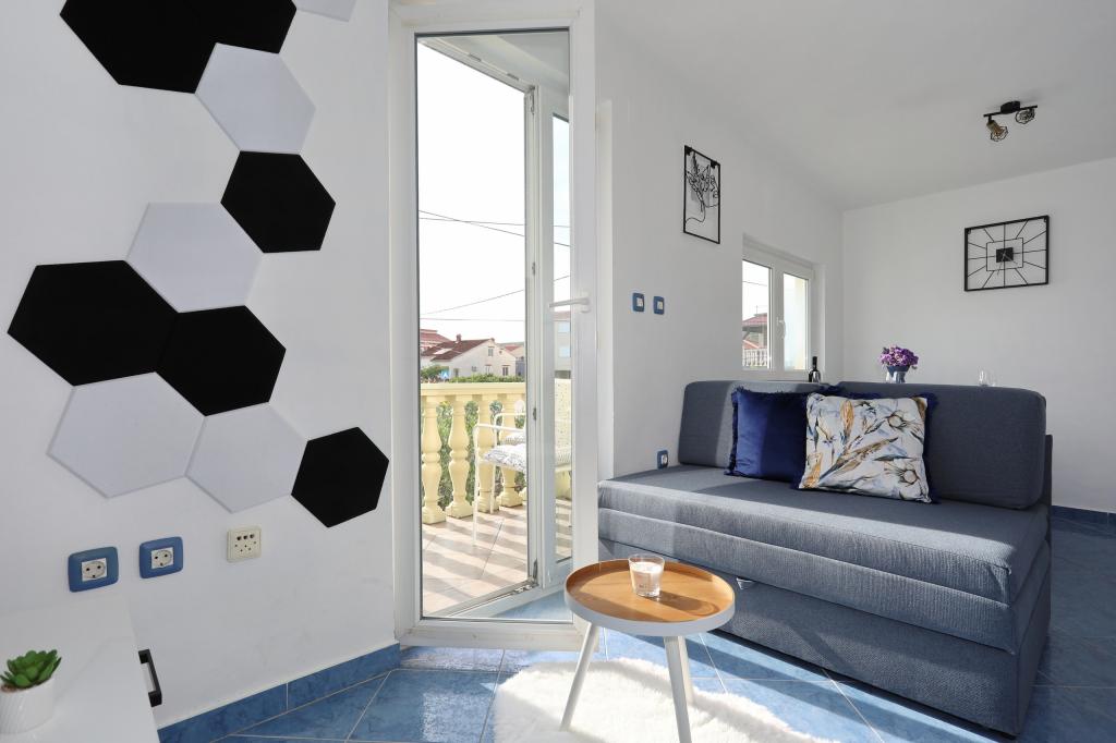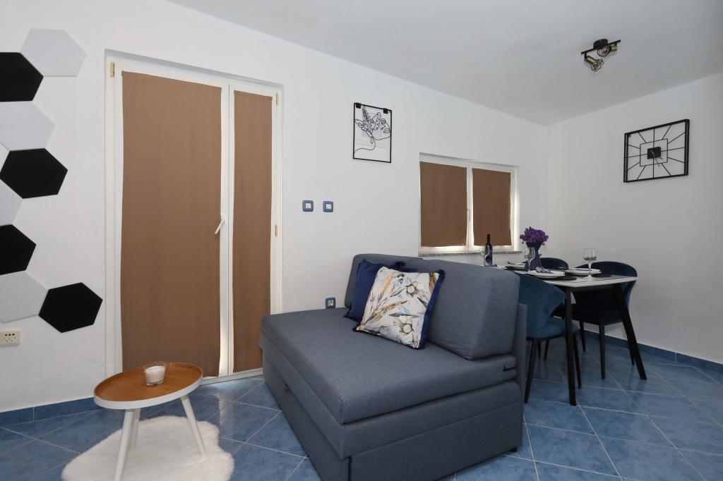 Nieuw, modern ingericht appartement van 45 m² met balkon in het centrum van de stad en een beveiligde parkeerplaats voor de ingang van het appartement. Winkels, een bakker, slager, markt, apotheek, postkantoor, geldautomaat, restaurant en cafés, een gezondheidscentrum, enz. liggen op slechts 5 minuten afstand. De afstand tot het eerste kiezel- en betonstrand is 5-8 minuten en kiezel- en schaduwstranden is 10-15 minuten lopen. Parkeren op het strand is mogelijk. Het zandstrand met beveiligde parkeergelegenheid bevindt zich in de buurt van de strandbar, op 5 minuten rijden met de auto. De stad zelf biedt een prachtige excursiebestemming, Čelinka, en ligt in de buurt van een aantal nationale parken, zoals Zrmanja, Paklenica, Krka, Plitvice, Kornati, enz.