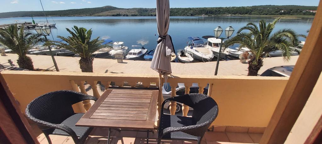 De appartementen liggen direct aan zee. Ze bevinden zich in het centrum van Posedarje met uitzicht op de haven en de kust langs het strand. Het eerste kleine zwemstrand ligt op 50 meter afstand. Het grote lokale strand ligt op 150 meter afstand. De appartementen bevinden zich in een gezinswoning met een aparte ingang. Alle appartementen hebben een balkon of terras en zijn ingericht met servies, beddengoed en handdoeken. Alle appartementen beschikken over airconditioning en een smart lcd-tv. De appartementen zijn geschikt voor maximaal 2 personen. We bieden 1 standaard ingericht appartement en 1 deluxe appartement met een terras van 50 m² met een privéjacuzzi op het dak, exclusief voor dat appartement, ligstoelen, handdoeken en zonneschermen voor motoren. Een deel van het terras is overdekt met panelen vanwege regen en felle zon, zodat het terras op elk moment van de dag gebruikt kan worden. Let op: de appartementen zijn alleen geschikt voor 2 volwassenen en er is geen mogelijkheid om meer personen te ontvangen. Kinderen jonger dan 8 jaar zijn niet toegestaan. We accepteren slechts één kleine, niet-agressieve hond tot 3 kg, en de hond moet op de grond slapen.