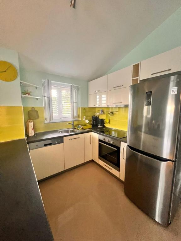 Het appartement is gelegen in een vakantiehuis waar u volledig alleen zult zijn en kunt genieten van rust en comfort. Het huis is gelegen in een klein rustig dorpje in de buurt van Posedarje, op 20 minuten afstand van Zadar. Er zijn 2 parkeerplaatsen op de afgesloten en beveiligde tuin , directe toegang tot het strand en de zee zonder drukte en veel mensen. Het appartement bevindt zich op de eerste verdieping met een prachtig groot terras en uitzicht op zee. Een grote woonkamer met een volledig uitgeruste keuken met oven, vaatwasser, koffiezetapparaat, waterkoker. Badkamer met douche en bidet. 2 mooie slaapkamers met tweepersoonsbedden. Als u wilt uitrusten en van de rust wilt genieten, is dit appartement in een vakantiehuis ideaal voor u. U wordt gewekt door het geluid van de zee en het getjilp van de vogels. Alle benodigde winkels en restaurants liggen op 5 minuten rijden met de auto. Het nationale park Paklenica ligt vlakbij. Leuke accommodatie voor maximaal 4 personen Kom bij ons langs. Vanaf het erf gaat u direct naar het strand en de zee, waar u rust heeft zonder drukte. Een tuin met mediterrane planten voor ontspanning.