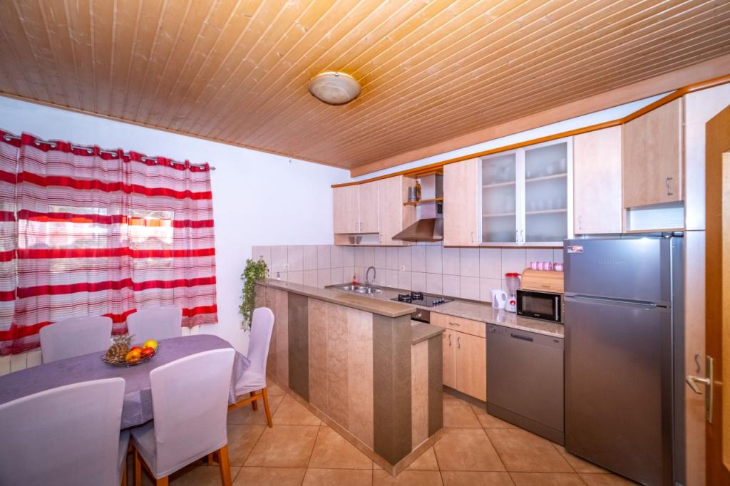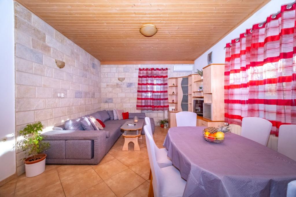 Het huis is gelegen in het kleine pittoreske dorp Postira. In de omgeving zijn restaurants, winkels, promenades en twee prachtige zandstranden. De inrichting is gelegen in een kleine straat zonder verkeer en drukte. De begane grond appartement met twee slaapkamers, een met een tweepersoonsbed en de andere een stapelbed. U kunt airconditioning, gratis internet, wasmachine, vaatwasser en een ruim overdekt terras. Op de eerste verdieping is een appartement met drie slaapkamers die plaats biedt aan maximaal 4 personen. Het is uitgerust met airconditioning, gratis internet, wasmachine en vaatwasser. Het heeft ook twee balkons en een groot overdekt terras met uitzicht op de zee. Aan de voorzijde van het huis is er een eigen parkeerplaats met twee parkeerplaatsen.