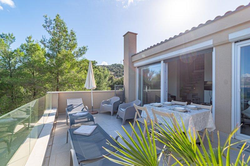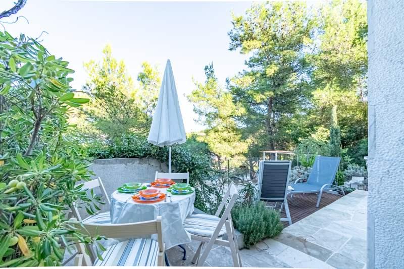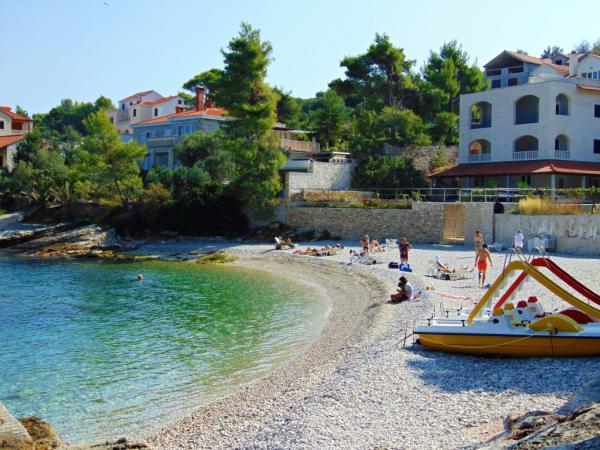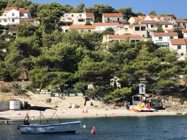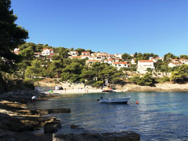 Inlusief wel Toeristenbelasting.Villa Inga ligt in de baai van Mala Lozna. In de directe omgeving van het appartement bevindt zich een café-bar op een rots die perfect past bij de natuurlijke omgeving. De terrassen lopen door tot aan een kiezelstrand, geschikt voor het hele gezin. Hier kunt u ligstoelen, parasols en een douche huren. Op een steenworp afstand begint de rotsachtige kust, waar u in een veel intiemere omgeving kunt genieten van de zee en zwemmen. Voor de villa loopt een weg door een dennenbos en langs de zee die leidt naar de baai van Lovrečina - ideaal om te fietsen, wandelen, joggen, enz. Op 100 meter afstand vindt u een goed gesorteerde supermarkt met een uitstekend aanbod aan levensmiddelen, dranken en huishoudelijke artikelen. Het centrum van Postira is in ongeveer 20 minuten te bereiken via een ontspannen wandeling langs de kust.