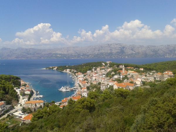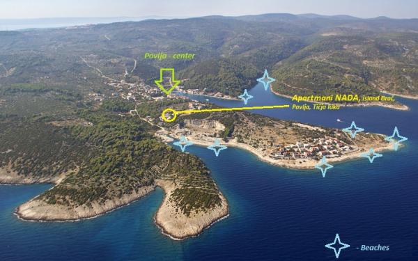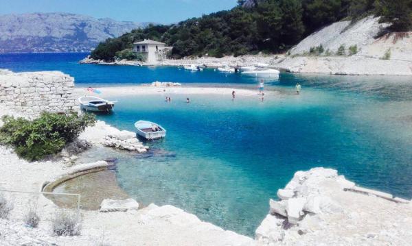 De appartementen liggen om er te komen, buiten het centrum (200 m) in de baai Ticja haven, in een rustige en omgeven door groen. Strand van het huis slechts 3 minuten lopen is van steen en kiezel. Op het strand geen drukte, en de zee is glashelder. De appartementen zijn nieuw en volledig uitgerust. Het eiland is goed verbonden met de veerboot naar het vasteland (Supetar, Sumartin) / dag tijdens het seizoen en tot 15 schepen. Welkom!