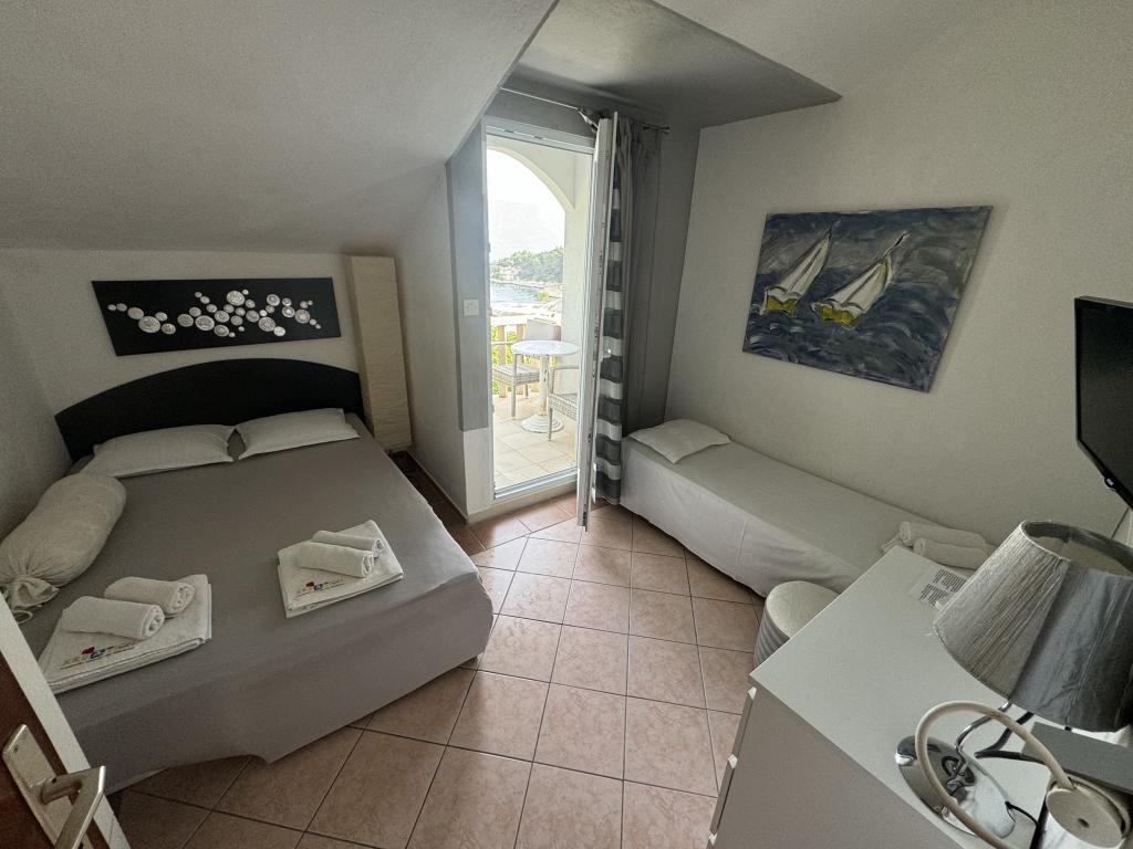 De appartementen liggen op 200 meter van het stadscentrum, in de baai "Tićja luka", in een rustige omgeving, omgeven door groen. Een rots- en kiezelstrand ligt op 50 meter van de accommodatie. Er is geen drukte en de zee is glashelder. Alle appartementen hebben uitzicht op zee. Ze zijn uitgerust met alle huishoudelijke apparaten en voorzien van airconditioning. De mogelijkheid om een grote buitengrill te gebruiken. Aankomst is vanaf 14.00 uur en vertrek is tot 10.00 uur (meer arrangement mogelijk). De prijs is inclusief het gebruik van beddengoed en handdoeken en de eindschoonmaak. De verblijfsbelasting is inbegrepen in de prijs van het appartement. Bij het maken van een reservering is het noodzakelijk om een aanbetaling te doen van 30% van de totaalprijs. Het eiland is zeer goed verbonden met veerdiensten vanuit de havens van Split en Makarska. BELANGRIJK: Seizoensprijzen gelden voor de periode van 15.06. tot 15.09. Prijzen buiten het seizoen gelden voor de periode vanaf 15 september. tot 15.06.