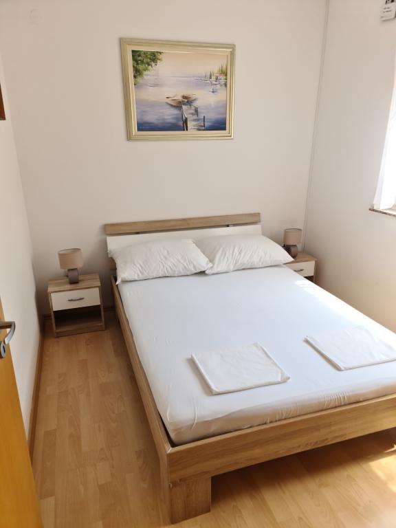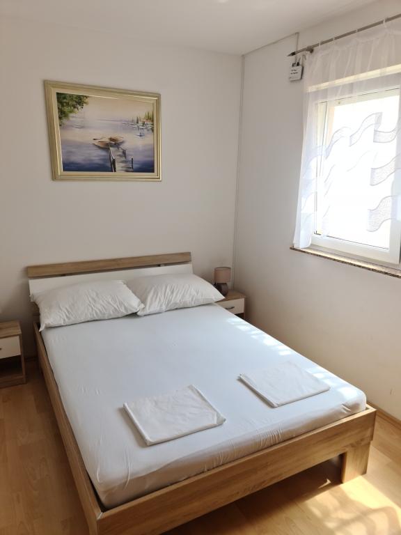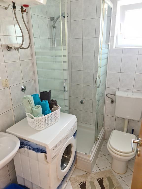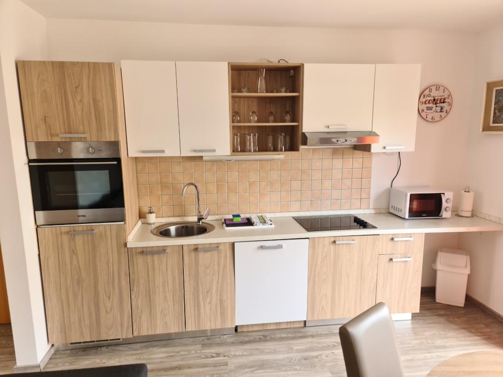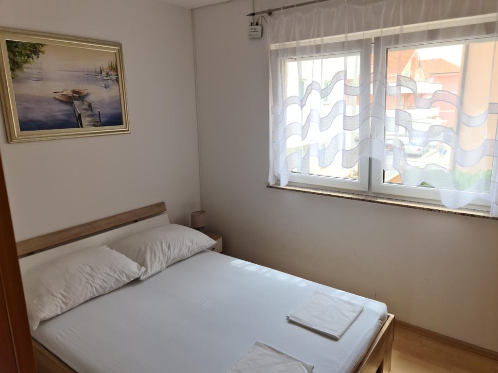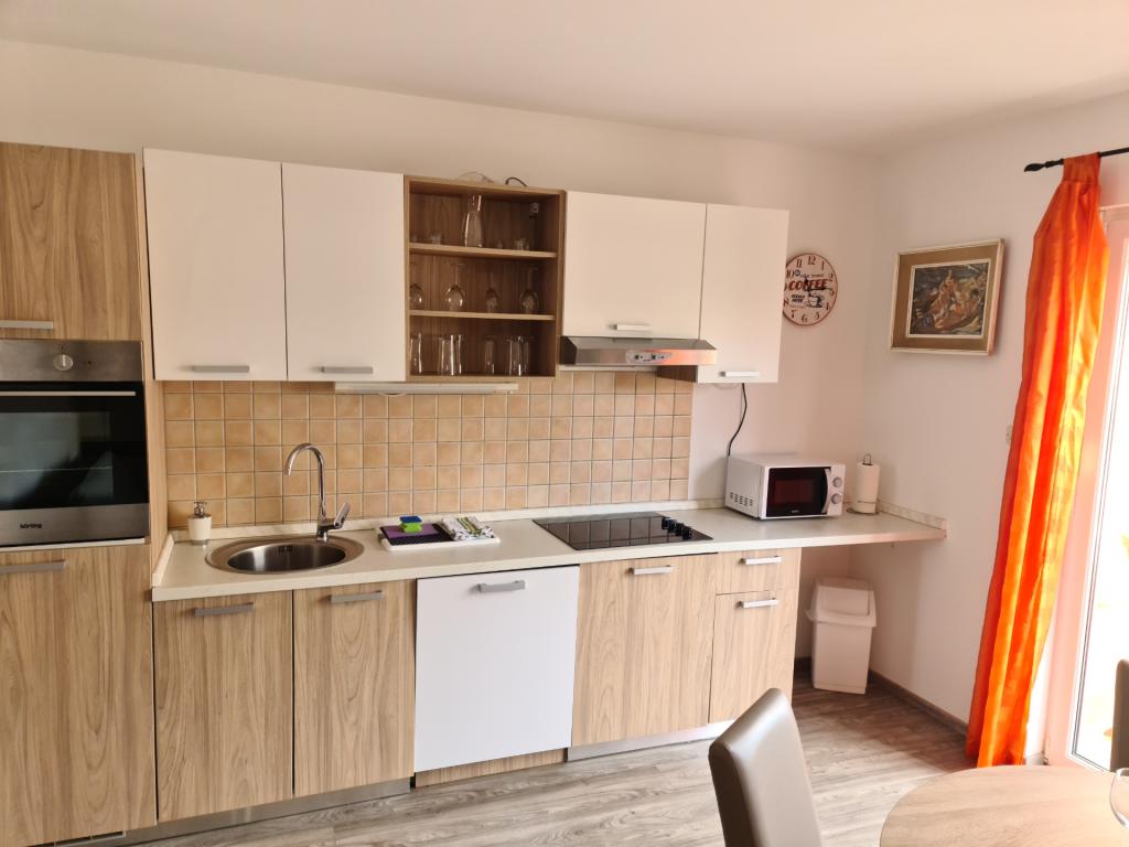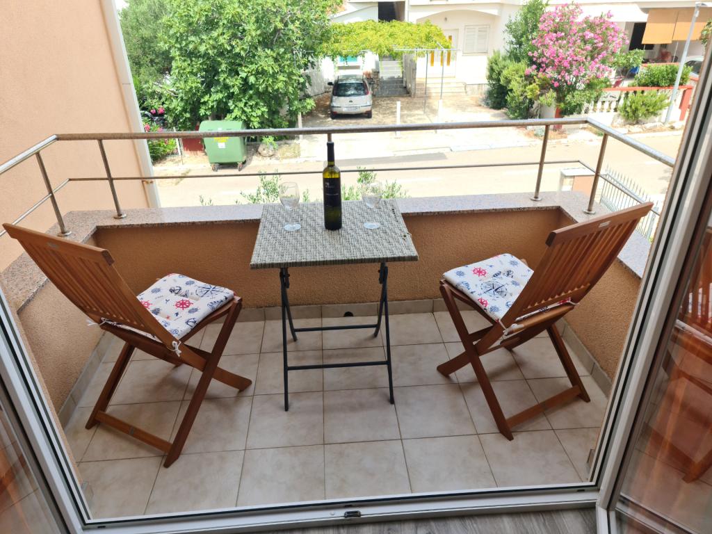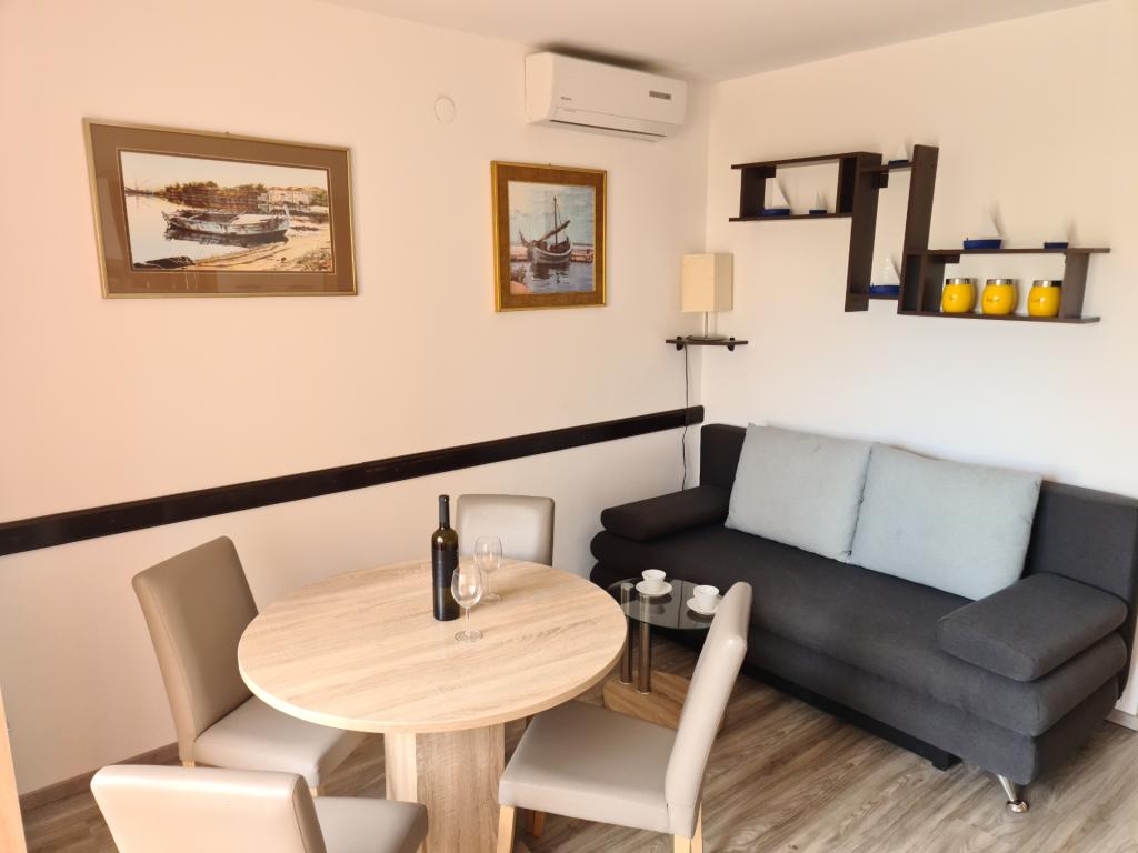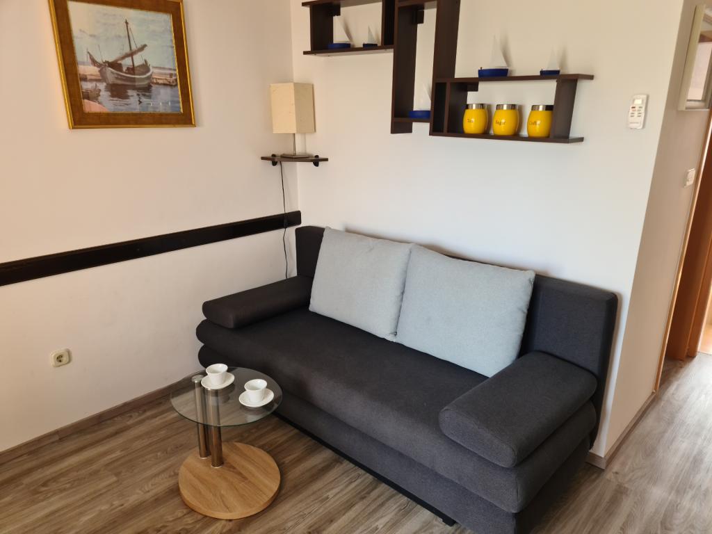 Volledig uitgerust appartement van 30 m² met aparte slaapkamer, balkon en privéparkeerplaats, ideaal voor koppels of gezinnen, gelegen op de eerste verdieping van een stadsvilla, op 1 minuut lopen van het strand en de cafés aan zee. Het bestaat uit een slaapkamer met een comfortabel tweepersoonsbed en een grote schuifkast, een woonkamer met een keuken (koelkast, vaatwasser, kookplaat met oven, magnetron, koffiezetapparaat, waterkoker) uitgerust met een slaapbank, tafel en eetkamerstoelen. , salontafel en smart flat TV (gratis wifi), badkamer met douche, toilet en wasmachine, het appartement is voorzien van airconditioning. In de directe omgeving van het appartement bevinden zich twee zand-/kiezelstranden, evenals diverse sport-, recreatie- en horecafaciliteiten (cafés, restaurants, tennisbanen, aquapark...)