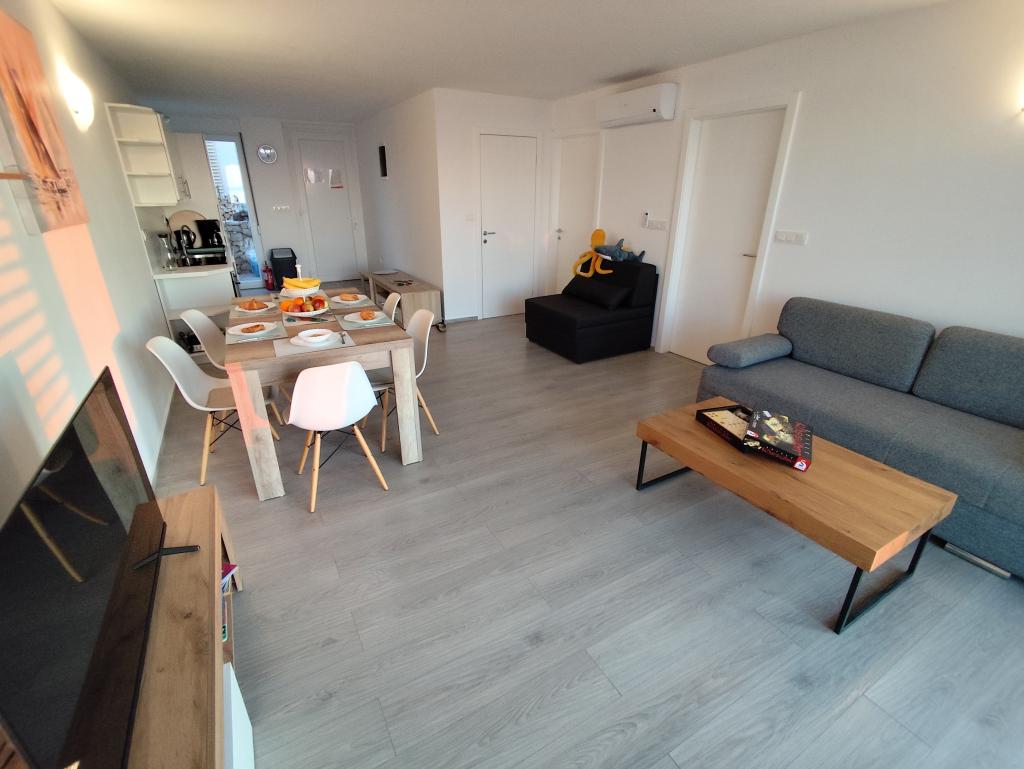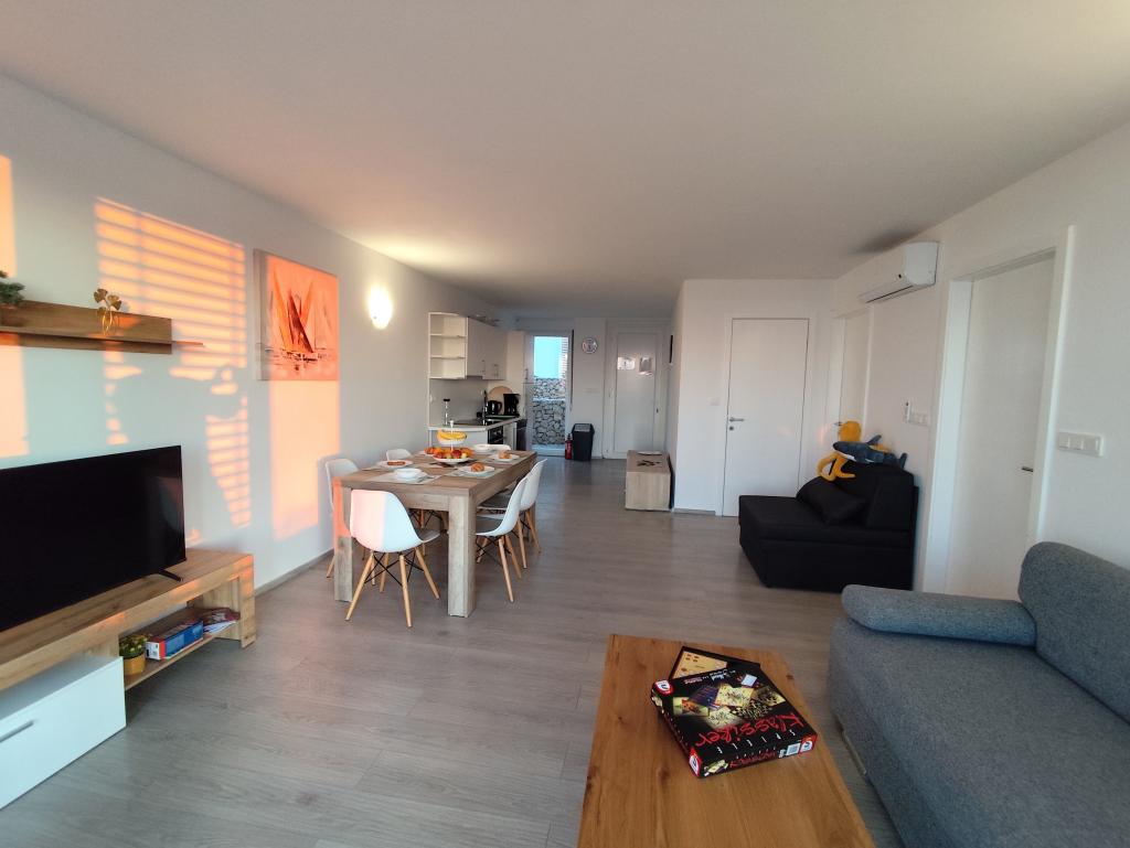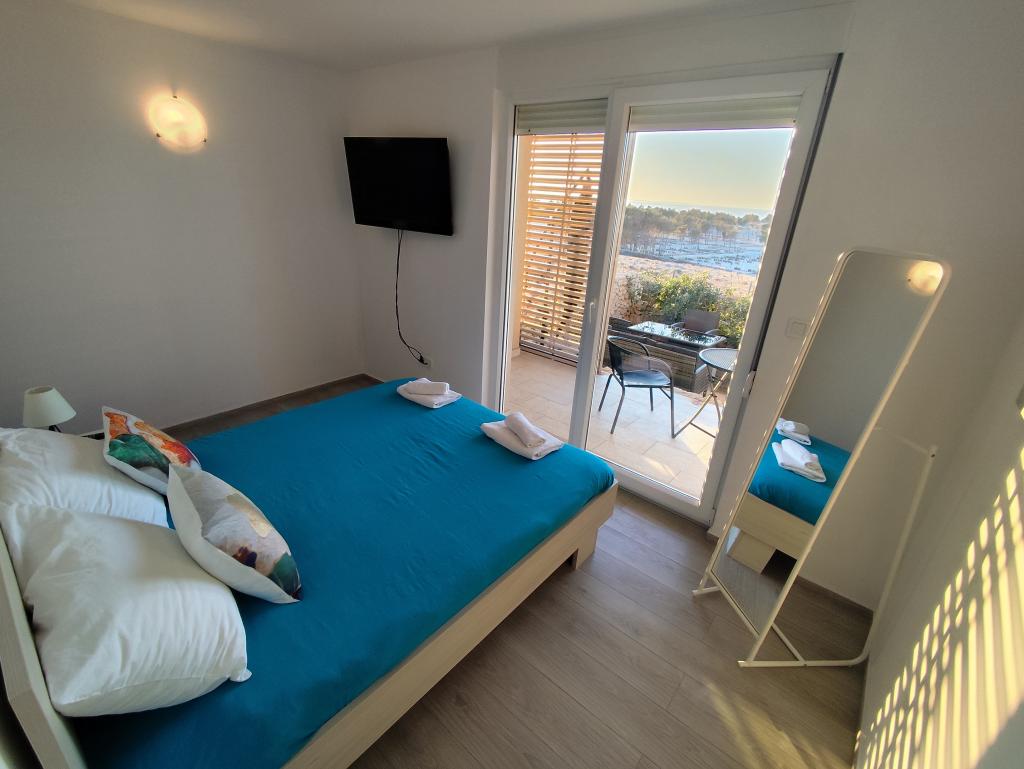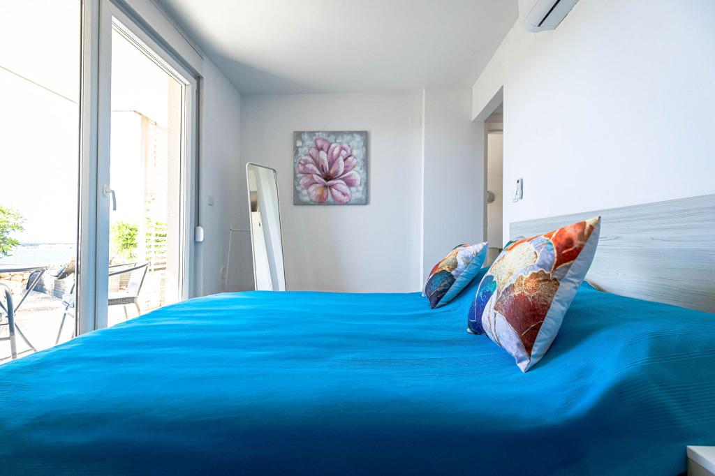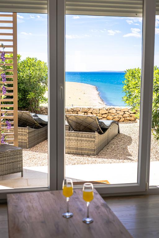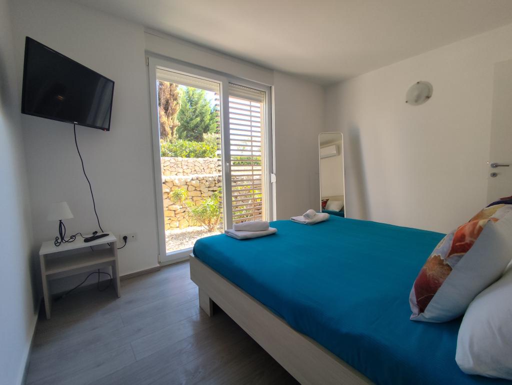 Appartement MORE I MIR ligt in een rustig deel van Povljana, op het schiereiland Rastavac, op slechts 150 meter van de zee en het zandstrand Trokut. Het appartement bevindt zich op de begane grond en is volledig uitgerust met alle voorzieningen voor een aangename vakantie. De accommodatie beschikt over 2 slaapkamers met twee aangrenzende badkamers, een woonkamer en een keuken. Extra bedden in de woonkamer (uitklapbare bank en fauteuil). Het appartement is volledig uitgerust met keukenapparatuur, 3 airconditioners en 3 tv's. De gebruikers van de appartementen hebben toegang tot gratis parkeergelegenheid en internet, een zwembad, de mogelijkheid om te barbecueën, een buitendouche en een gemeenschappelijke speelruimte (glijbaan, tafeltennis, etc.). Het appartement beschikt over een eigen terras en tuin met ligstoelen en zitgelegenheid, met uitzicht op zee, op de 1e rij. In de directe omgeving bevinden zich een camping, bakkerij, winkel en restaurant. Povljana biedt met zijn prachtige zand- en kiezelstranden en heldere, ondiepe zee een kwaliteitsvakantie voor gezinnen. Het centrum ligt op 3,6 km afstand.