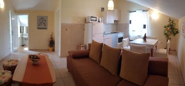 Appartement Oleander (51 m2) bestaat uit een open ruimte met een woonkamer (extra bed voor 2 personen), eetkamer en keuken, een aparte slaapkamer met een tweepersoonsbed (2 personen) en een badkamer met douchecabine en toilet. Er staat een tweepersoonsbed in de slaapkamer en een slaapbank in de woonkamer die gebruikt kan worden als extra bed voor 2 personen. Het bevindt zich op de 1e verdieping, is voorzien van airconditioning en beschikt over WiFi. In de tuin bevindt zich een tuin en een terras (12 m2), geschikt om buiten rond te hangen met een barbecue. Het terras en de barbecue worden uitsluitend gebruikt door de gasten van het appartement en worden met niemand gedeeld, zodat zij hier tijd kunnen doorbrengen met gezelligheid, dineren of een boek lezen tussen de mediterrane planten. De parkeerplaats ligt naast het gebouw en is gratis. De zee en het strand liggen op ongeveer 10 minuten lopen en het centrum van Povljana (winkels, cafés, restaurants etc.) ligt op 5 minuten lopen. De gastheer bevindt zich in de buurt en staat indien nodig tot uw beschikking.