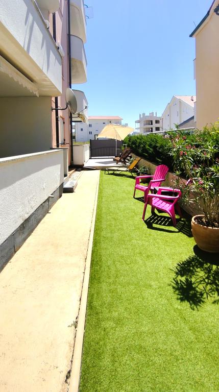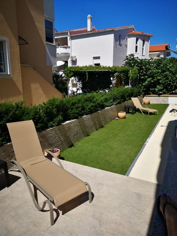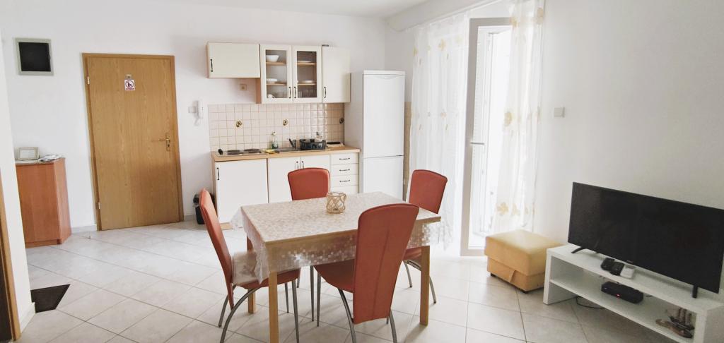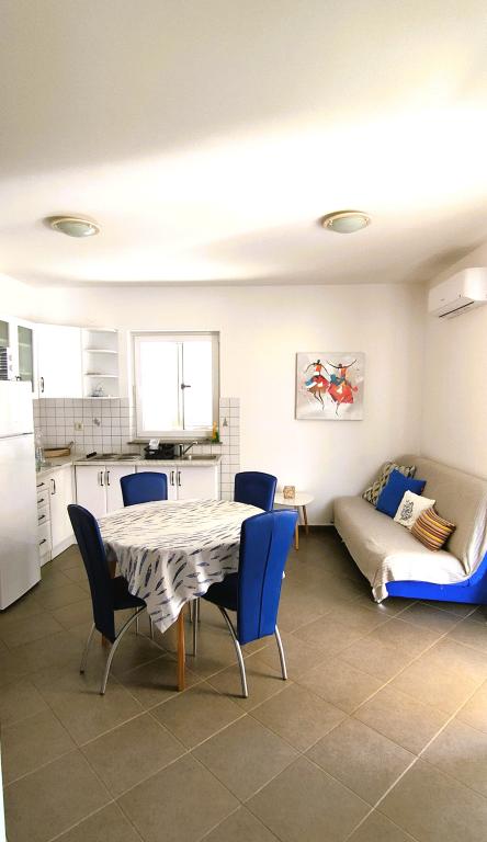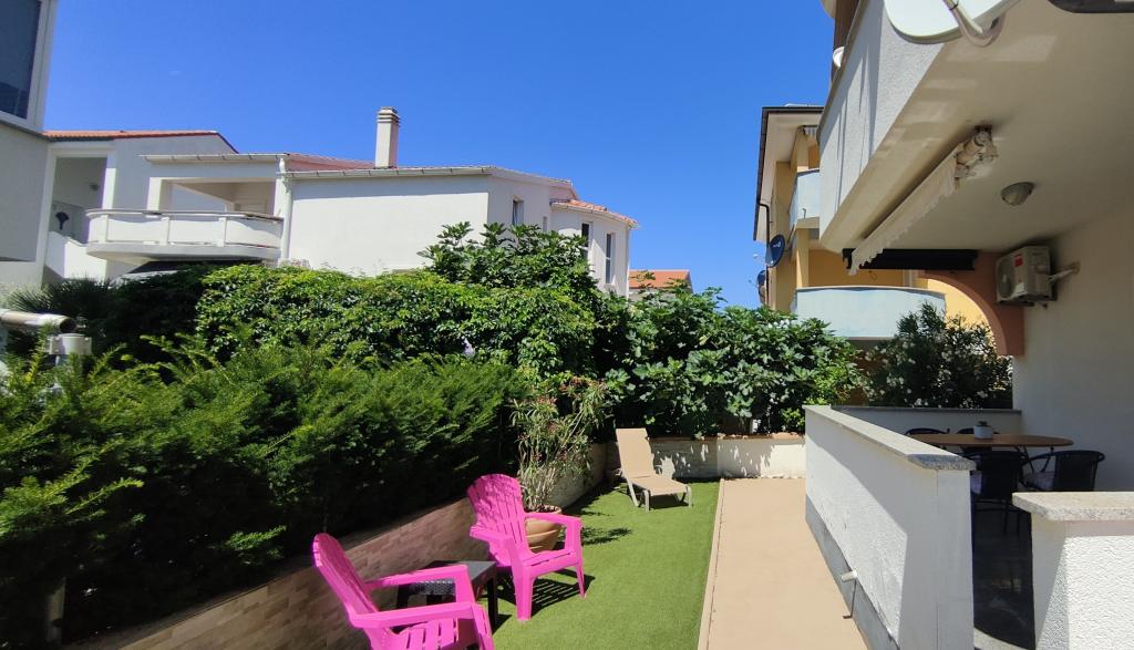 "Benedetti Apartments" ligt vrijwel direct aan het strand, op een perfecte locatie. U kunt er bijna zo de zee in springen! Ze bevinden zich op een kleine, rustige plek, ideaal om te ontspannen, op 2 rijen van ons hoofdstrand. Dit is een kans om te ontsnappen aan de drukte en een perfecte vakantie te beginnen. De appartementen zijn voorzien van aangelegde tuinen, waardoor een ideale omgeving voor ontspanning ontstaat. Stelt u zich eens voor dat u op een ligstoel zit met een cocktail in de hand, omringd door rust en bloemen. Het kiezelstrand "Mali Dubrovnik" ligt op slechts 20 m afstand (2 minuten), en het zandstrand ligt op slechts 5 minuten lopen. Restaurants liggen op 50 m afstand en een winkel op 30 m van het appartement. Voor grotere aankopen kunt u het centrum van Povljana gemakkelijk te voet of met de auto bereiken (600 m). Op slechts 20 meter afstand, aan de overkant van de straat, vindt u een café en een tennisbaan. De appartementen bevinden zich op de begane grond en zijn ideaal voor gezinnen met kinderen en stellen die van een rustige vakantie houden. Appartementgebruikers hebben gratis parkeergelegenheid en internet, de mogelijkheid om te barbecueën en er zijn gemeenschappelijke buitenruimtes waar u kunt ontspannen. Parkeer uw auto en geniet!