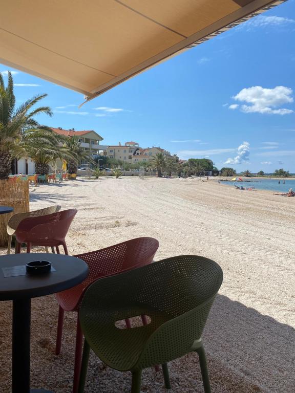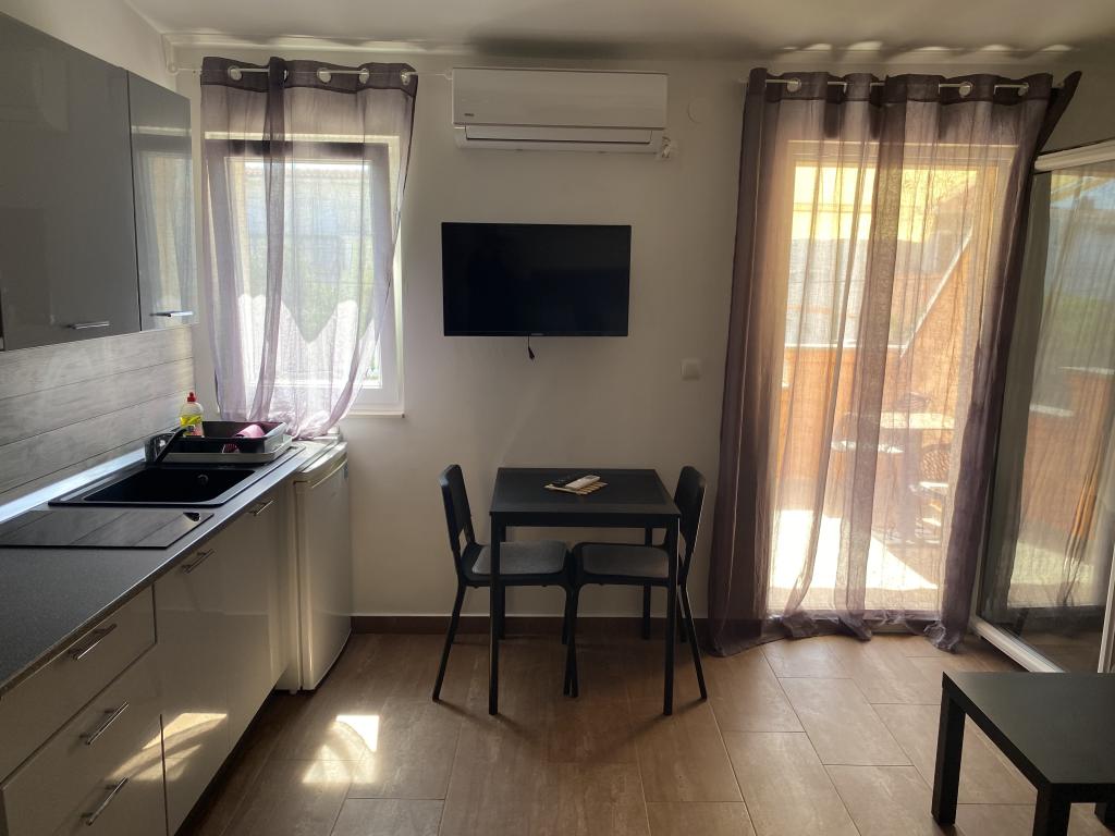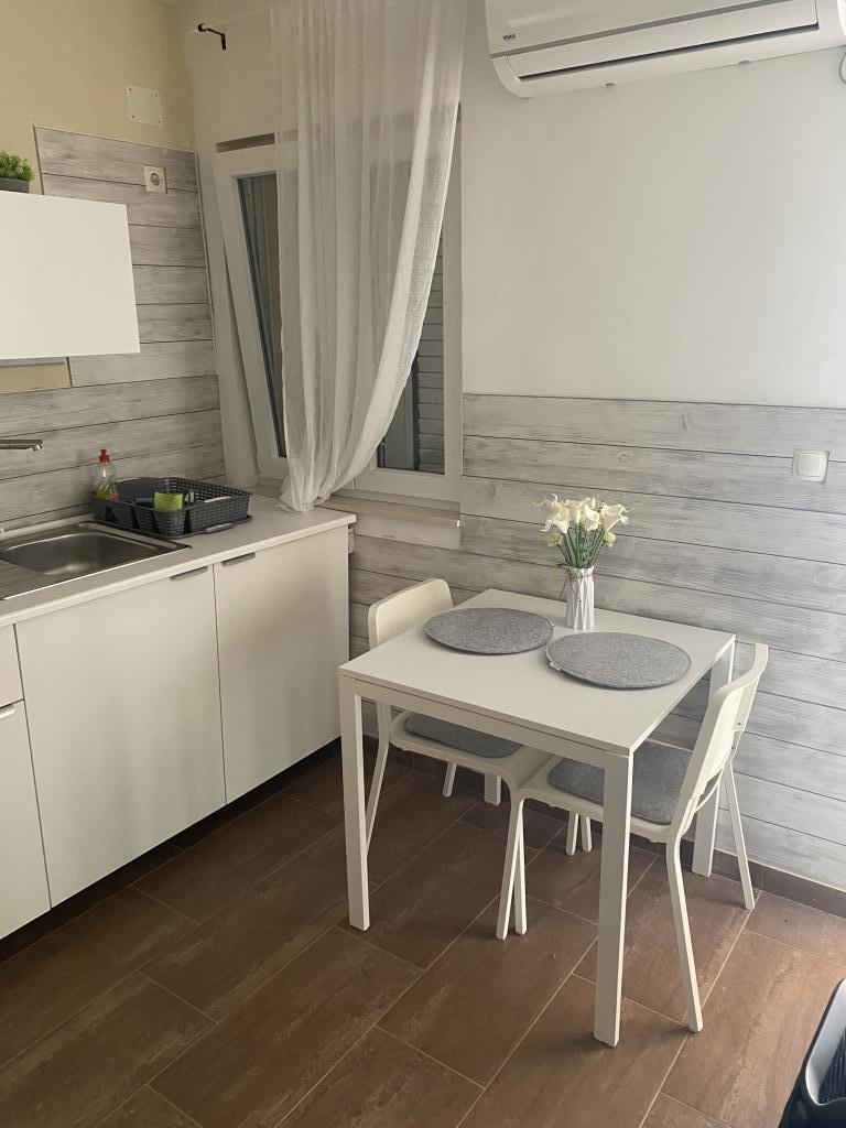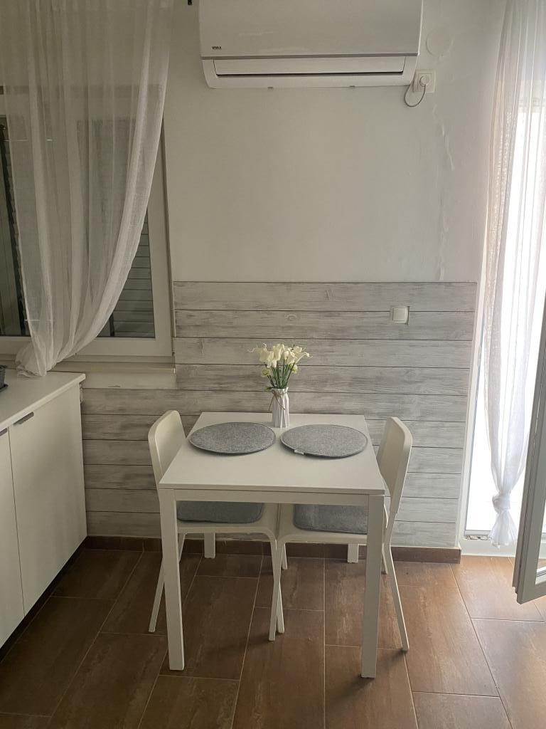Volledig moderne, onlangs gerenoveerde appartementen, op 250 meter van het zand- en kiezelstrand, dat gedeeltelijk in de schaduw ligt en geschikt is voor kinderen. Cafés, restaurants, fastfood en ijs langs het hele strand. Er is beveiligde parkeergelegenheid op het erf naast het huis, de appartementen zijn voorzien van airconditioning en hebben een terras. Het huis is omgeven door eengezinswoningen in een doodlopende straat. NIET GESCHIKT VOOR DIEREN!!!