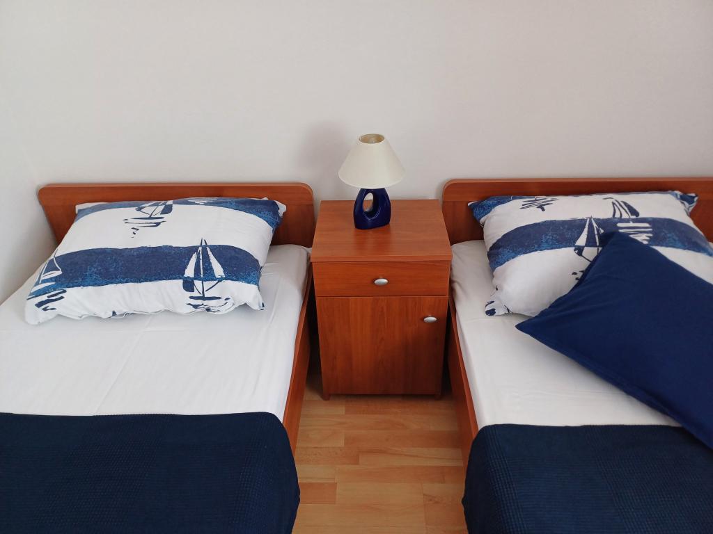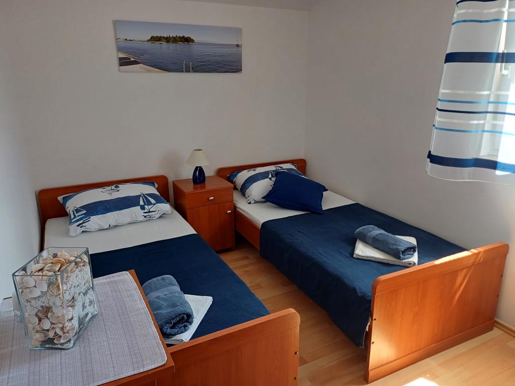 Met uitzicht op de stad Zadar, de verre toppen van Velebit en het eilandje Galevac, en gelegen tegenover het zandstrand van Jaz in de stad Preku, biedt appartement Mirjam comfortabele en warme accommodatie voor gezinnen met kinderen, senioren die zoals wandelingen langs de zee, liefhebbers van fietspaden of liefhebbers van een tocht door de Zadar-archipel met een gehuurde speedboot. Appartement Mirjam bevindt zich in een gebouw op slechts 5 minuten afstand. weg van het strand, waar versnaperingen worden aangeboden op verschillende terrassen van cafés en restaurants aan zee. Het duurt slechts 12 minuten om het stadscentrum te bereiken. gemakkelijke wandelingen. De gast kan aan zijn behoeften voldoen door een bezoek te brengen aan de markt, taverne, restaurant, bakkerij en Tommy-supermarkt. Met meerdere dagelijkse bootlijnen tussen de stad Preka en de stad Zadar kunt u de historische waarden van de stad bezoeken, genieten van het luisteren naar het ZEE-ORGEL, een SALUTATIE NAAR DE ZON sturen, en een goede avond entertainment maakt uw vakantie compleet. vakantie. Appartement Mirjam van 54 m2 heeft een woonkamer met keuken, een hal, twee slaapkamers, een badkamer met toilet en een terras.