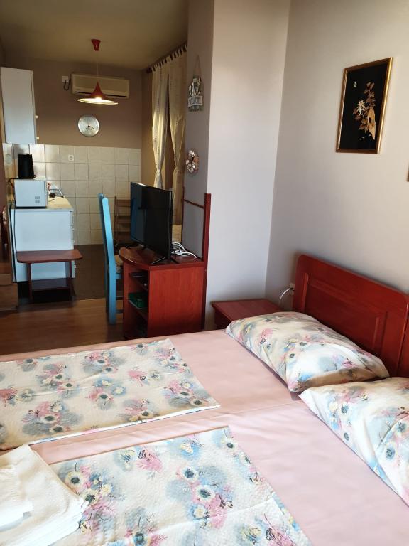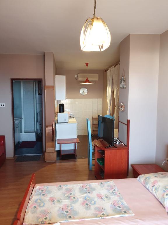 We verbleven zes nachten in de faciliteit, we werden heel hartelijk verwelkomd. De gastvrouw is zorgzaam en aardig, voordat we in Preko aankwamen belde ze ons op dat de accommodatie van te voren klaar was en dat we vrij konden komen. Bij aankomst trakteerde ze ons op een welkomstdrankje en een klein cadeautje dat ons in de kamer begroette. Het appartement was schoon en netjes en goed uitgerust met alles voor een aangenaam verblijf - airconditioning, koelkast, magnetron, waterkoker, oven, servies, glazen, enz. In de accommodatie worden huisregels gerespecteerd en het is er altijd erg stil, wat goed is voor mensen die echt willen rusten. In ongeveer vijf minuten loop je naar het strand. De eerste winkel (Tommy-supermarkt) ligt op een paar minuten afstand van de accommodatie. De stad Preko staat vol met prachtige stranden, restaurants, cafés, banketbakkers, natuur die je dagenlang kunt bezoeken. Er is ook de mogelijkheid om naar Kornati te gaan, wat we zeker aanraden omdat we zijn geweest en het was geweldig. Reserveren kan bij het reisbureau in Prek. Het was erg gezellig voor ons en we hopen volgend jaar terug te keren. Aanbeveling!
