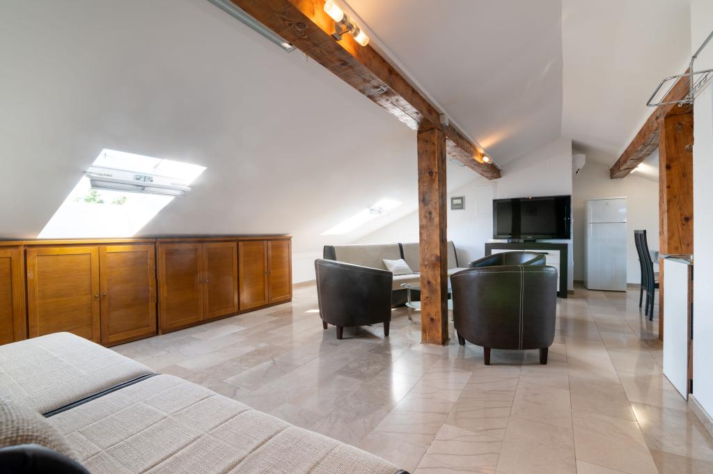 Het huis is gelegen op de eerste rij aan zee, nabij het centrum van Prek. Het comfortabele, onlangs gerenoveerde appartement bevindt zich op de eerste verdieping van het huis en heeft 2 slaapkamers, een kinderkamer, een woonkamer met keuken, een badkamer en een terras. De kamers hebben toegang tot een balkon met uitzicht op het strand en de zee. Vanuit de woonkamer is het terras met uitzicht op het strand en de zee te bereiken. Er is een extra bed in de woonkamer. Comfortabel studio-appartement van 60 m2, met 4 bedden, keuken, woonkamer en badkamer bevindt zich op de zolder van het huis. Op de begane grond is er een gemeenschappelijk groot terras dat gebruikt kan worden door gasten van studio-appartementen. We hebben ook een grote grill en broodoven in de tuin. Er is parkeergelegenheid voor auto's op het erf. De appartementen zijn voorzien van airconditioning, satelliet-tv en Wi-Fi-verbinding.