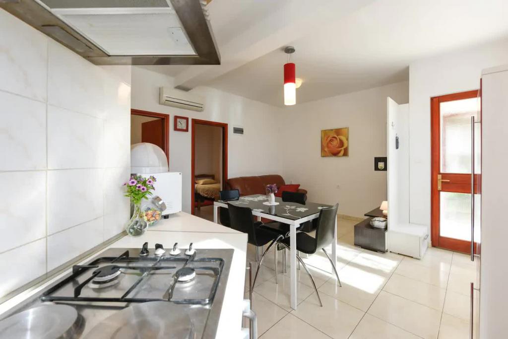 Nieuwe, prachtig ingerichte appartementen op de begane grond van een gezinswoning, op een steenworp afstand van het prachtige Jaz-strand, dat de Blauwe Vlag heeft en een volleybalveld heeft. Er zijn restaurants en cafés in de directe omgeving en op slechts twintig meter afstand bevindt zich een kinderspeelplaats. Elk appartement heeft een eigen groot terras met uitzicht op zee. De appartementen beschikken over twee slaapkamers, een ingerichte keuken, een badkamer, een woonkamer, een buitenbarbecue en een eigen parkeerplaats. Welkomstgeschenk is bij de prijs inbegrepen.