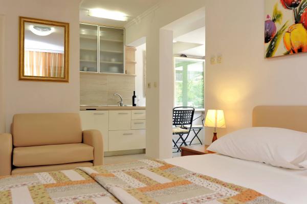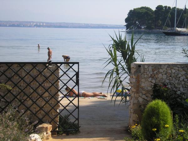 Villa EDEN is gelegen op een van de MEEST AANTREKKELIJKE LOCATIES in de hele omgeving, direct aan het zandstrand Jaz in Preko op het eiland Ugljan. De appartementen in Villa EDEN zijn zeer comfortabel en bieden een uitzonderlijk uitzicht op zee, het hele zandstrand, het groene eilandje Školjić in de directe omgeving en de stad Zadar. Het strand naast Villa EDEN is perfect voor gezinnen met kinderen, zelfs de allerkleinsten. Villa EDEN beschikt over een eigen tuin met gazon, prieel en barbecue. In de directe omgeving, op ca. 50 meter afstand, bevinden zich diverse hoogwaardige horecagelegenheden, waaronder een strandbar, pizzeria, restaurant en banketbakkerij, waar gasten zich optimaal kunnen vermaken. De omgeving en de stad Preko zijn zeer netjes met goed onderhouden promenades, fietspaden, goed onderhouden stranden en talloze voorzieningen die een topbestemming zonder drukte kenmerken. De nabijheid van Zadar, het aanbod aan excursies en de kinderfaciliteiten maken uw zomervakantie in onze stad en Villa EDEN onvergetelijk. Wees onze gasten, we zijn er zeker van dat de meesten van jullie nog jaren zullen terugkomen