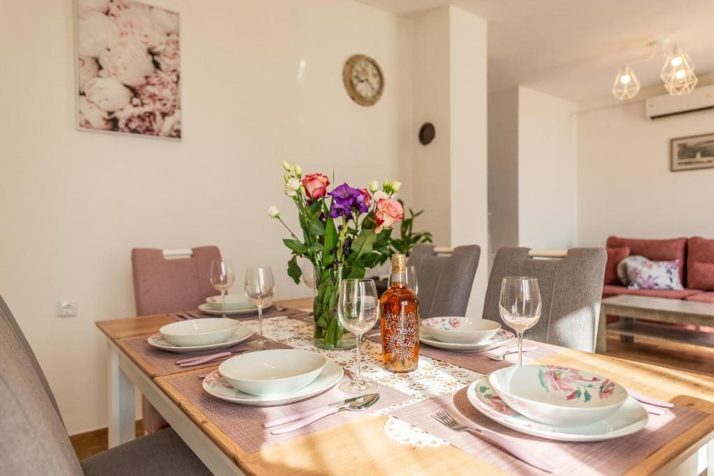 Het vakantiehuis Little House by the Sea ligt in Preko op het eiland Ugljan, in de directe omgeving van de veerhaven. Het bestaat uit een keuken en woonkamer, badkamer, twee slaapkamers en een groot terras met uitzicht op zee. Het huis is geschikt voor maximaal 6 personen. De kamers zijn voorzien van tweepersoonsbedden van 180*200 cm en de bank in de woonkamer kan worden uitgeklapt tot een bed van 160*200 cm. De keuken is volledig uitgerust met servies en gasten hebben de beschikking over een fornuis met oven, koelkast, vaatwasser, koffiezetapparaat en waterkoker. Gratis WiFi en Netflix zijn beschikbaar. Er is airconditioning in de woonkamer. Gasten hebben onder andere de beschikking over een wasmachine. Er is parkeergelegenheid op het terrein en gasten kunnen ook gebruikmaken van de barbecue in de tuin. Er is een klein zandstrand direct voor het huis en het stadscentrum met talrijke restaurants en cafés ligt op ongeveer 700 m van de accommodatie. De dichtstbijzijnde winkel ligt op slechts 50 meter van het huis.