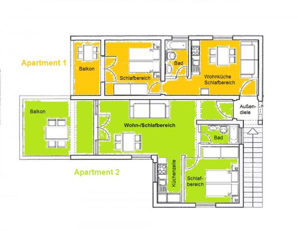 Appartement voor twee personen + twee extra bedden (41 m2)