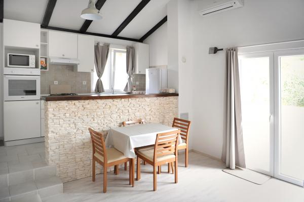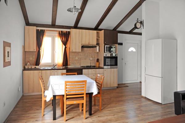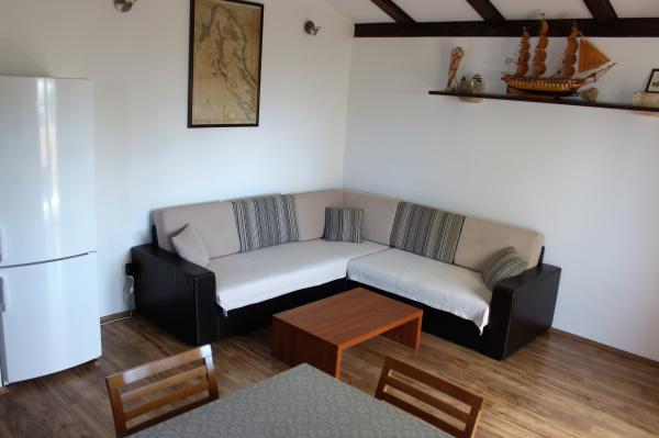 Het appartementencomplex ligt op 150 m van de belangrijkste haven - de haven van Krijal. De appartementen zijn ongeveer 40 vierkante meter groot en bestaan uit een slaapkamer met een tweepersoonsbed, een badkamer met douche en een ruime woonkamer en keuken. Een comfortabele slaapbank kan dienen als extra bed voor twee personen. Ze zijn uitgerust met satelliet-tv, wi-fi en airconditioning. Ze ademen een rustieke stijl uit en zitten vol met interessante en originele details die ze een bijzondere warmte en charme geven. Door de verschillende tinten van de inrichting in de appartementen en de eenvoudigere navigatie bij het boeken, zijn de appartementen onderverdeeld in bruin - chocolade en wit - vanille. :-)