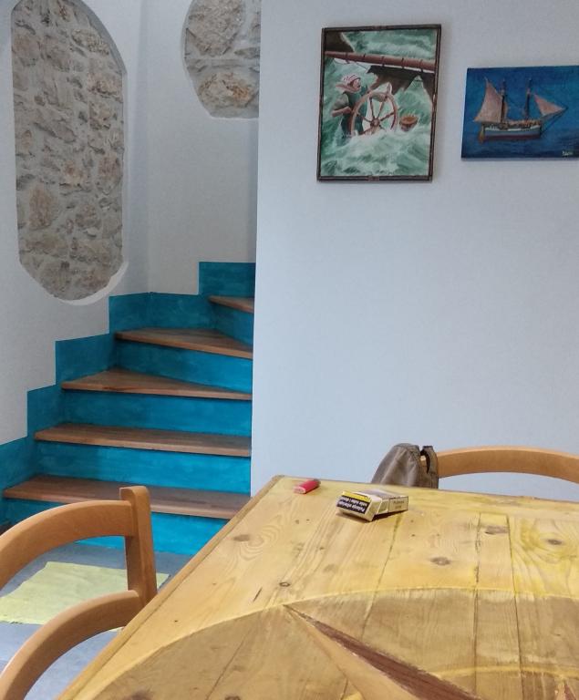 Vakantiehuis gelegen aan de westkant van het eiland vlakbij zee en mooie kiezelstranden. Het huis bestaat uit een begane grond met een keuken, woonkamer en een klein toilet. Boven zijn twee slaapkamers, een tweepersoonsbed en een met een groot tweepersoonsbed, badkamer en een ruim terras. Het stadscentrum en het postkantoor liggen op slechts tien minuten lopen van de accommodatie.