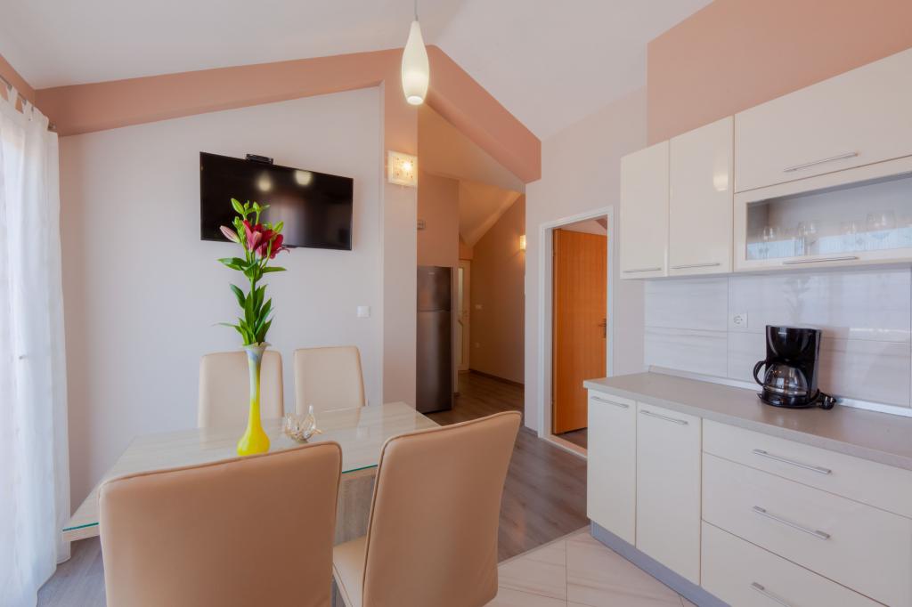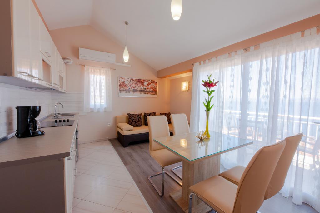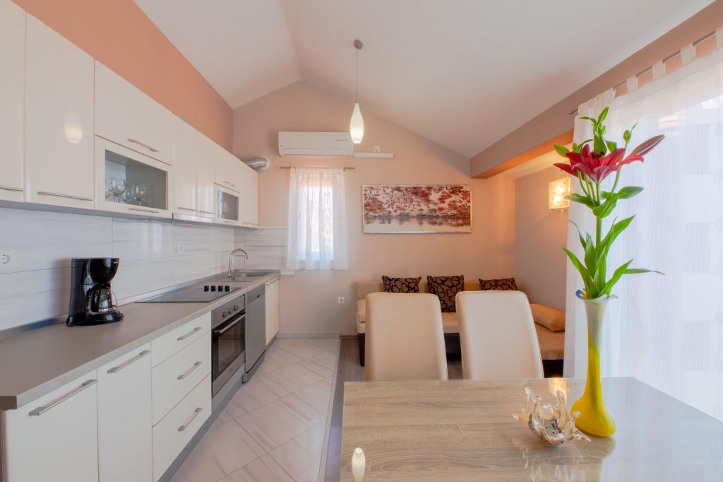 We zijn een gezin met twee kinderen en we verbleven in de appartementen op de waar we vrede, rust en ontspannen vakantie. Locatie is izvanredna- voor diegenen die liever een rotsachtige strand in de voorkant van het huis dan (het zou me ongeveer 30 meter) die je hebt, en de andere op 100m van het huis is een kleine, stadsstrand waar je beschikbaar voor huur parasols en strandstoelen te hebben. De gastheren waren samengesteld, beleefd en zeer vriendelijk toen we werden verwelkomd met zelfgemaakte opgeslagen schelpen (top van de top waren), vijgen, olie en brandy. Het appartement is hetzelfde en zelfs beter dan de foto's. Schoon, netjes met terras en uitzicht op zee. We raden aan iedereen. Ik kan niet mis gaan als je deze accommodatie te kiezen. Natasa-Macedonië