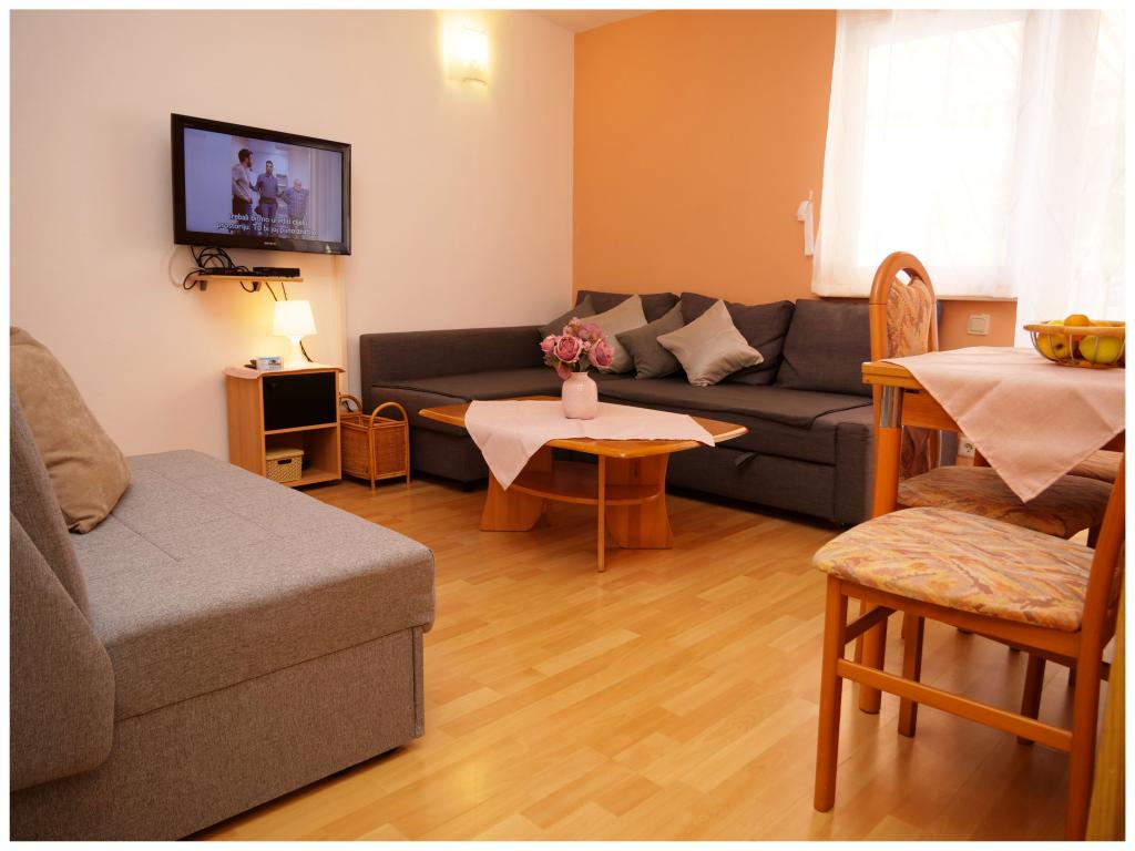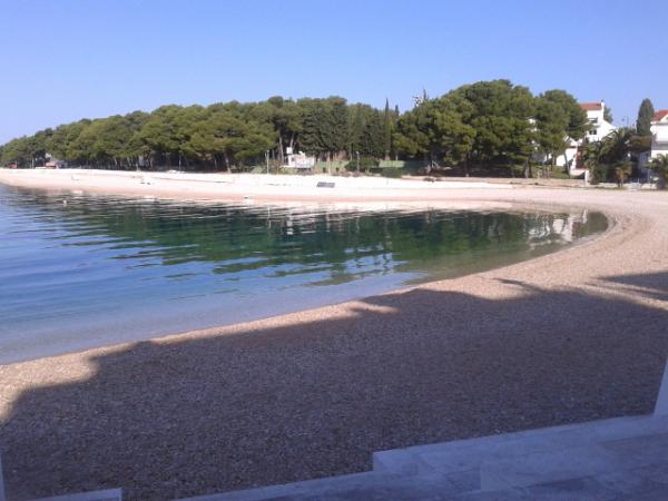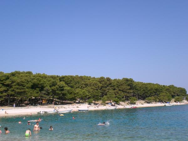 Appartementen Tina-Toni bevinden zich bij de ingang van Primosten, op een rustige locatie met uitzicht op de oude Primosten en de zee. En naar een van de mooiste stranden van Primosten (mala raduca) is het slechts 150m. In het linker- en rechterdeel van het gebouw verhuurt de familie Batinić (anders woonachtig in Duitsland) twee appartementen met twee slaapkamers en airconditioning (gebruik van airconditioning tegen extra kosten). De woonkamer in het linker appartement kan gebruikt worden als slaapkamer, terwijl in het rechter appartement in beide kamers een tweepersoonsbed staat. Een ruime tuin, barbecue, zonneterras, garage en parkeerplaatsen in de buitenlucht garanderen dat de gast alles krijgt wat hij nodig heeft.