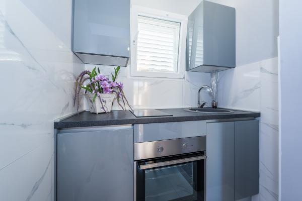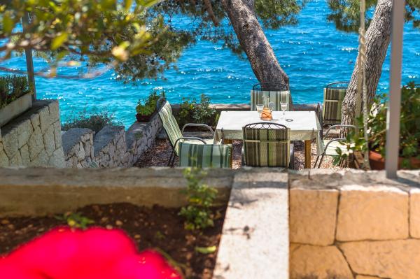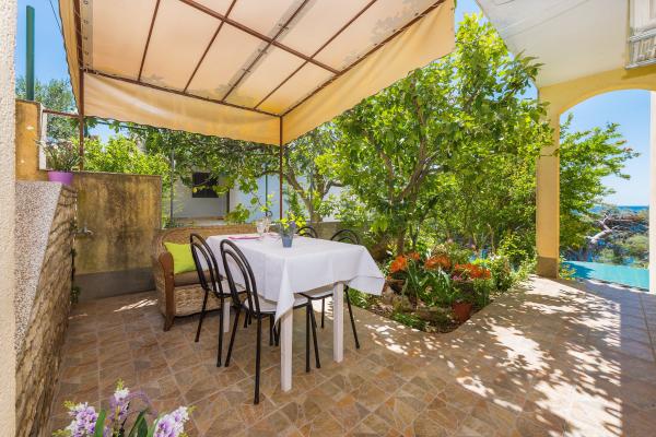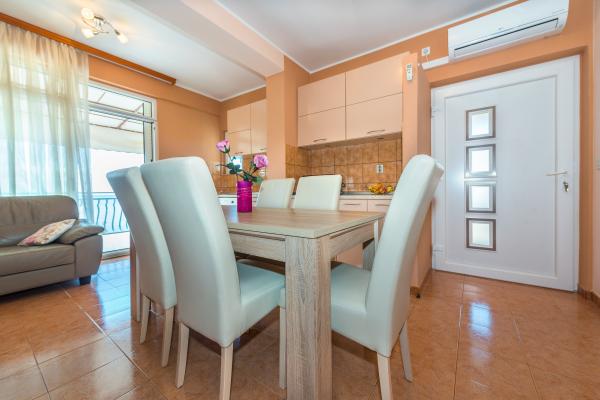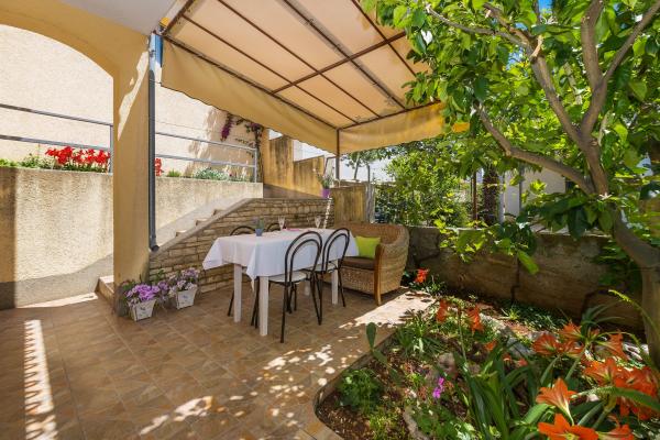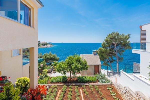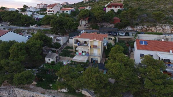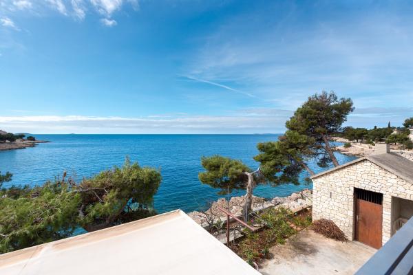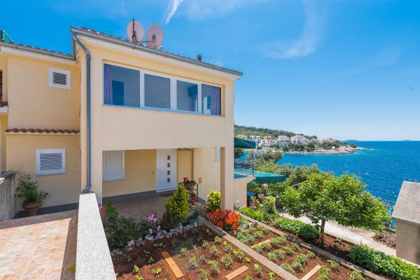 Een familiehuis met drie appartementen in een rustige omgeving van een dennenbos met uitzicht op de kristalheldere zee op 10 meter afstand. Eerste rij naar de zee. Alle gasten krijgen parkeergelegenheid en het gebruik van een buitengrill, evenals een plek om uit te rusten in de schaduw van de pijnbomen. Elk appartement heeft een eigen ingang, is modern uitgerust (satelliet, wi-fi) en heeft een terras met uitzicht op zee. Langs de zee strekt zich een 5 km lange promenade uit, geschikt om te joggen, wandelen of fietsen, en in het achterland van het dorp zijn er mountainbikepaden. We zijn gevestigd in de buurt van twee nationale parken: NP Krka en NP Kornati, evenals de steden Šibenik, Trogir en Split, die onder bescherming staan van Unesco. Wij bieden u een aangename en ontspannende vakantie in onze appartementen, en we kijken uit naar uw komst, de familie Marinov Mirela en Branimir