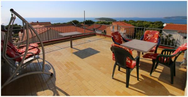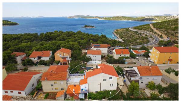 Comfortabele appartementen met grote terrassen in een rustige plaats Bilo, 6 km voor Primošten, aan de kust. Ongeveer 150 m van de zee en het strand. Prachtige en ongerepte natuur met een kristalheldere zee.