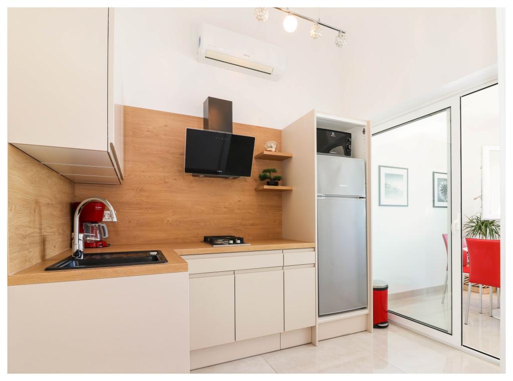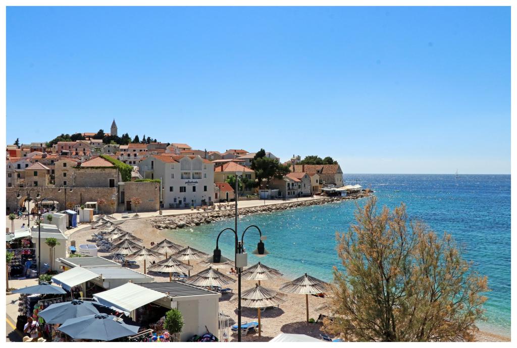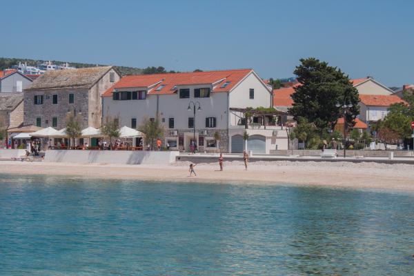 Moderne appartementen in het centrum van Primosten, direct naast het strand. Met uitzicht op de zee, het strand en de zonsondergang.