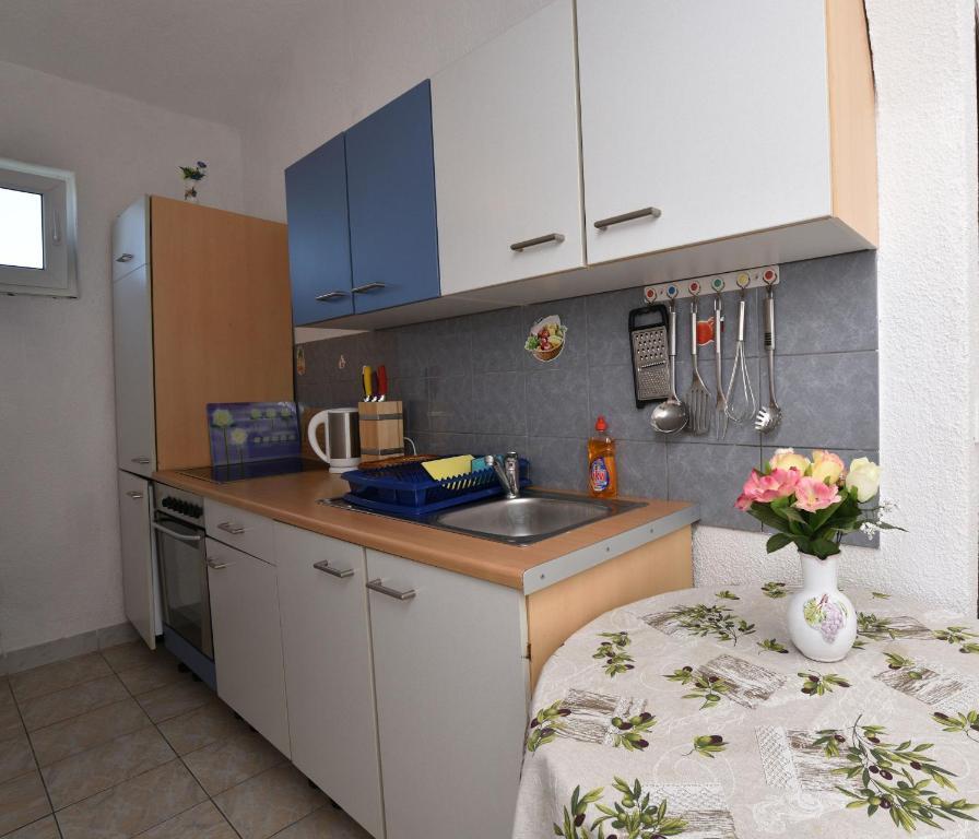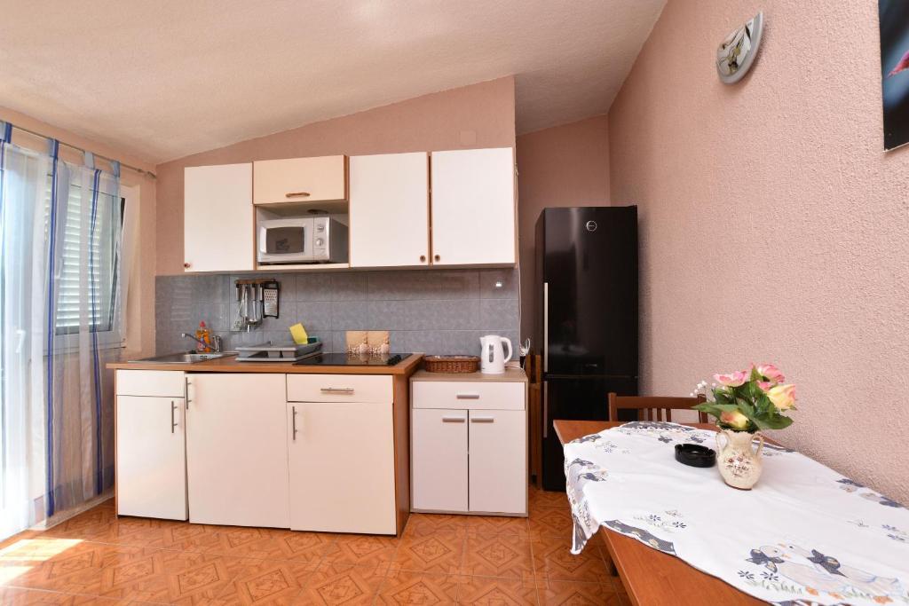 We verbleven 9 dagen in appartement A7 als stel met één kind en we waren er erg blij mee! De locatie is perfect: het strand ligt op slechts een steenworp afstand van het appartement en er zijn restaurants en alles wat je nodig hebt voor een zorgeloze vakantie in de buurt. Het appartement was van alle gemakken voorzien, netjes en brandschoon. We hadden alles wat we nodig hadden voor een comfortabel verblijf. De wifi werkte geweldig en het uitzicht vanaf het terras is gewoonweg fantastisch - een echt paradijsje om te ontspannen! Mevrouw Jurkić is een buitengewoon vriendelijke en gastvrije gastvrouw. Ze heette ons meteen welkom, gaf ons nuttige tips over bezienswaardigheden in de omgeving en verraste ons zelfs met een cadeautje bij vertrek, zowel voor ons als voor het kind, wat bijzonder ontroerend was. We raden deze accommodatie aan iedereen aan: gezinnen, stellen en iedereen die een rustige en aangename vakantie aan zee wil. We komen zeker nog eens terug!