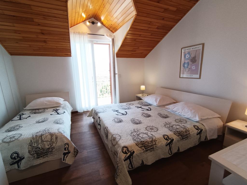 De faciliteit bevat twee volledig ingerichte en uitgeruste appartementen met airconditioning in het nieuwe gedeelte van Primosten voor accommodatie van 4 tot 8 personen. Appartement 6 plus 2 geschikt voor gezamenlijke vakantie van twee gezinnen. Het appartement beschikt over twee badkamers met een ruime keuken, drie grote slaapkamers, een groot terras en een balkon met prachtig uitzicht op de zee en het oude gedeelte van Primošten. Appartement 4 plus 1 bevindt zich op de begane grond van een gezinswoning met een aparte ingang en bevat twee kamers, een aparte badkamer en toilet, een keuken en een veranda voor gezinsvakanties. Aan de voorzijde van het appartement bevindt zich een zithoek en een grote omheinde tuin. De appartementen hebben een beveiligde parkeerplaats voor het huis. Het is 10 minuten lopen naar het centrum en 5 minuten lopen naar het eerste strand. Huisdieren tot 5 kg zijn toegestaan tegen een toeslag van EUR 10 per nacht. Naast deze twee appartementen verhuren wij een vakantiehuis met zwembad KATE&MARE, gelegen in het Dalmatische Zagora in de stad Vrgorac, en wordt ook aangeboden op de website van Apartments Vrgorac. Wij verheugen ons op uw komst!