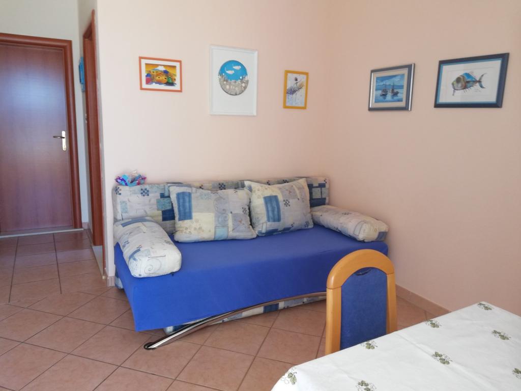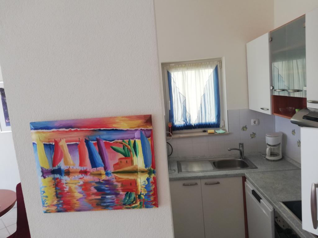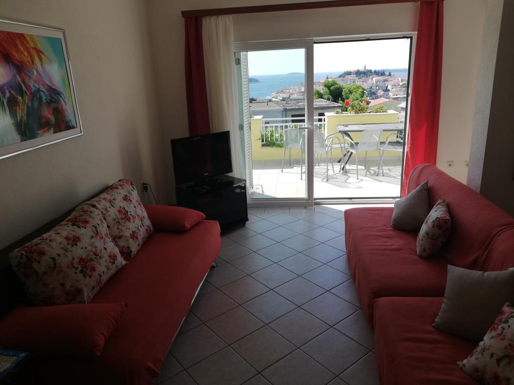 Comfortabel en mooi ingericht appartement, gelegen op een kleine verhoging boven de weg in de Primo-puppy. Het appartement en het terras bieden een prachtig uitzicht op de zee en de oude stad. Het ligt op slechts 8 minuten lopen van het strand, ook van het stadscentrum. Het appartement bestaat uit een slaapkamer voor twee personen, keuken met woonkamer, badkamer en terras. In de woonkamer staat een slaapbank voor twee personen. Geschikt voor echtpaar met kleine kinderen. Het appartement bevindt zich op de 1e verdieping.