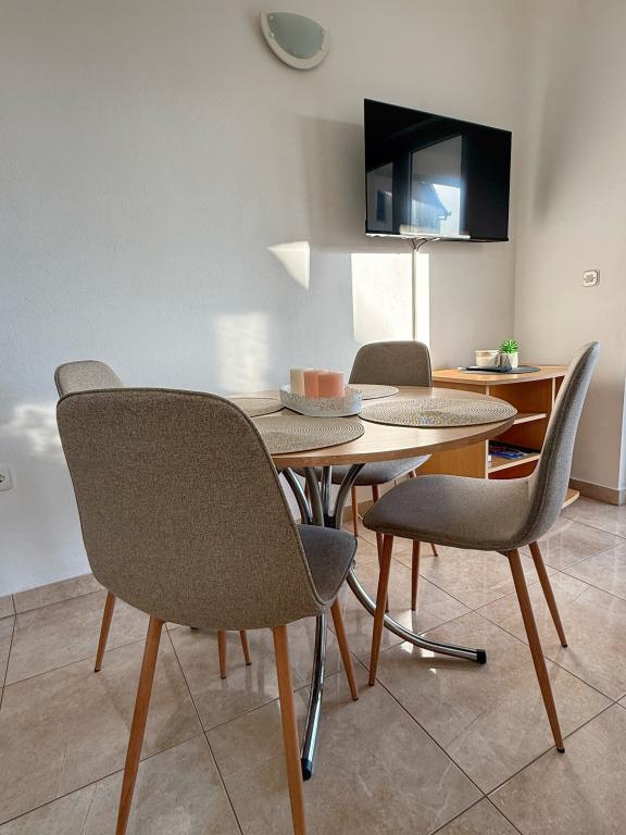 Zeer mooi, schoon appartement met een groot terras en prachtig uitzicht op zee! De hospita Nada en haar zoon Ivan en schoondochter Andrea waren erg vriendelijk en meegaand. De oude binnenstad en de zee met de mooiste stranden van Primosten zijn te voet in ongeveer 5 minuten te bereiken. We hebben een heerlijke vakantie gehad en kunnen het appartement aanbevelen!