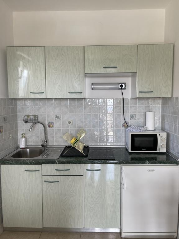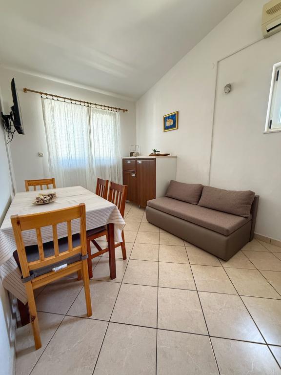 Zeer ruim appartement op de begane grond, een enorm groot overdekt terras. De eigenaren zijn erg vriendelijk en behulpzaam. Het meubilair is iets ouder, maar het appartement biedt alles wat u nodig heeft voor een comfortabele vakantie. Het heeft ook airconditioning. Het strand is dichtbij - het is prachtig, met enorme schaduw van bomen en een heldere zee. Ik raad aan!