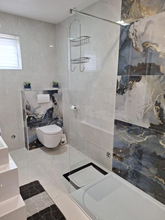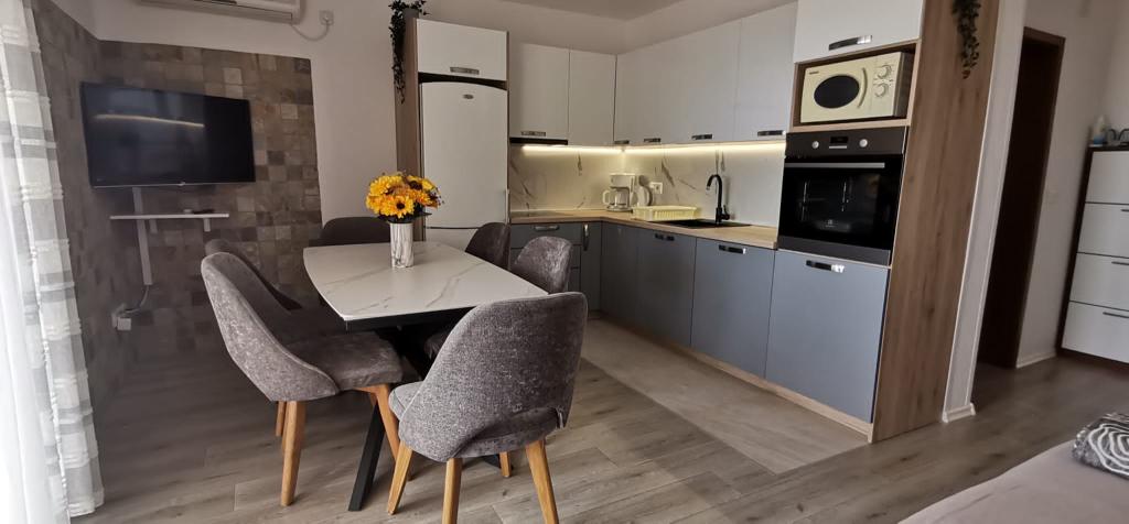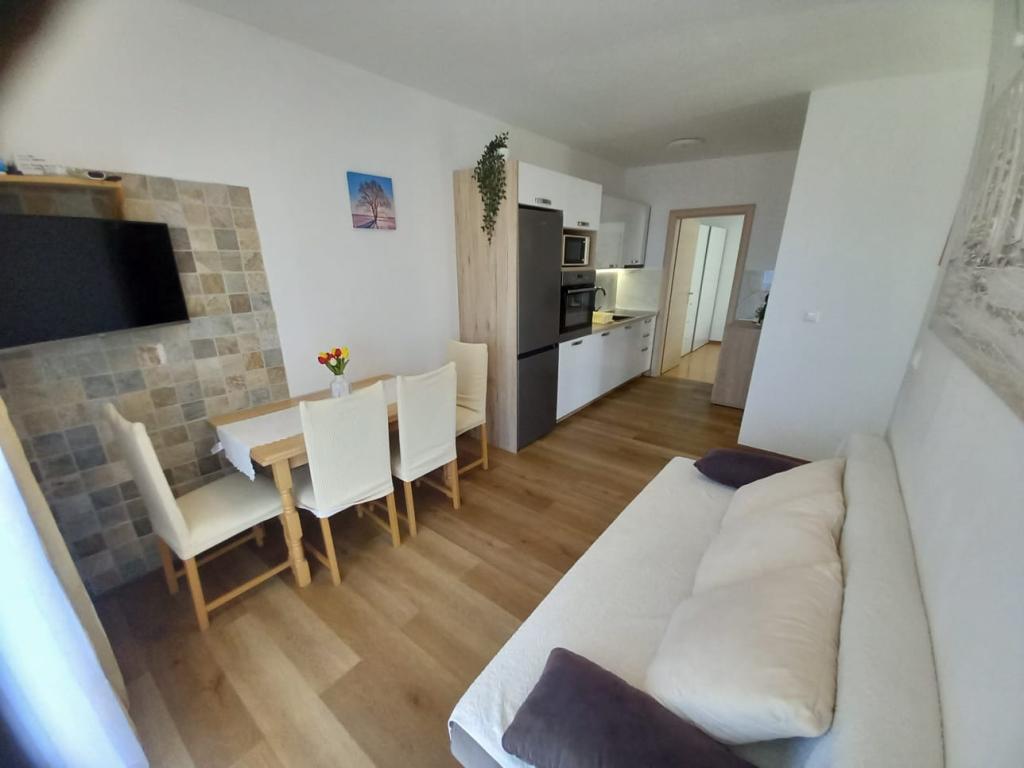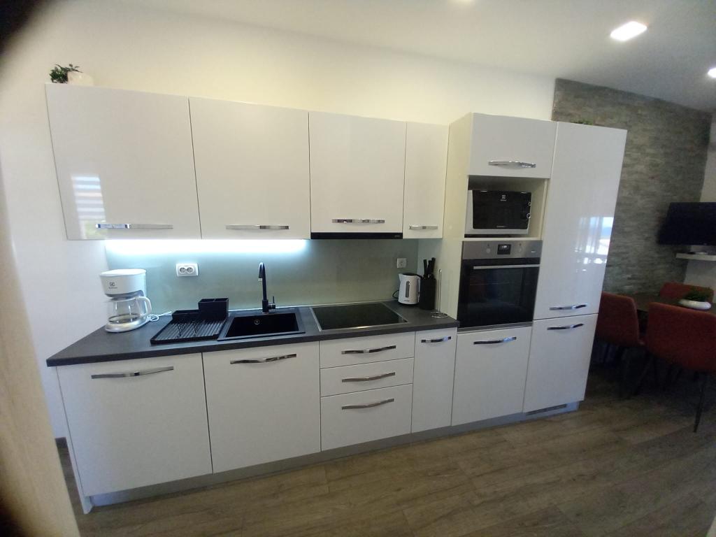 We voelden ons echt thuis in de appartementen van Vera. De appartementen zijn modern ingericht met alles wat je nodig hebt en absoluut perfect schoon. Het balkon biedt een ongelooflijk uitzicht op de zee. De gastheren in deze appartementen zijn de vriendelijkste die we ooit hebben gehad. We werden verwelkomd met fijn bereide zelfgemaakte salami en worstjes, evenals verschillende likeuren en cognac. Later maakten ze een diner voor alle gasten en trakteerden ze ons op gegrilde vis en vlees. En over Franja's pareltjes, om nog maar te zwijgen over hoe leuk ze waren en die waren er ook nog volop. We zouden deze appartementen aan iedereen aanbevelen, omdat ze de beste zijn in de hele Adriatische Zee. Volgende zomer komen we zeker terug.