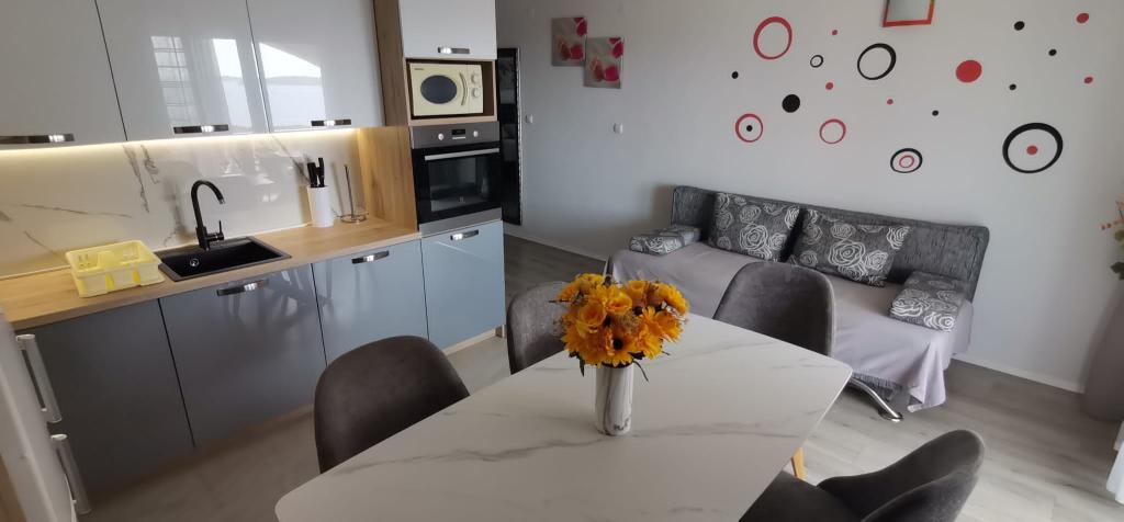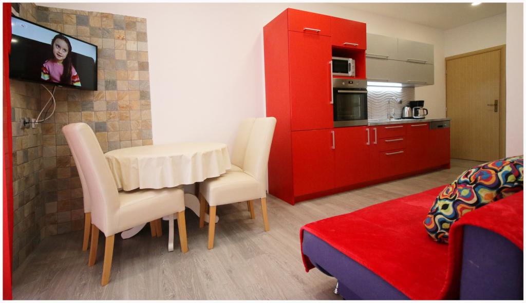 De kamer voldeed aan al onze verwachtingen. Uitrusting, bekijken, bestellen. Het appartement was perfect voorbereid. Bovendien zijn de eigenaren geweldig. Zeer behulpzame en positieve mensen. We voelden ons alsof we daar familieleden waren. Daarnaast werden we ontvangen met versnaperingen en lokale drankjes en tijdens ons verblijf was er ook een avondbarbecuebijeenkomst voor alle gasten van het pension. We gaan vaak naar Polen, maar ook naar Kroatië, en zo'n geweldige gastvrijheid hebben we nog nooit meegemaakt. Ik raad deze plek aan!!!