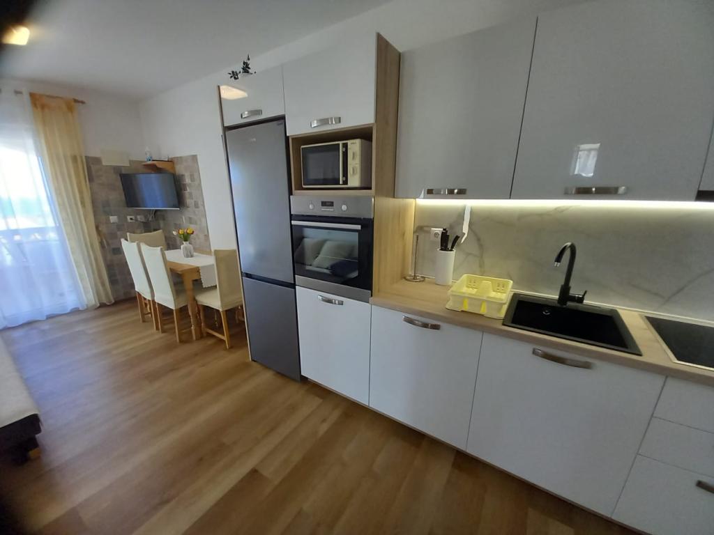 Het appartement is gerenoveerd, zeer ruim en het uitzicht vanaf het balkon naar de zee is het hoogtepunt. De eigenaren Vera en Franjo zijn echte gastheren, zoals vrienden bezoeken. We waren zeer tevreden en bevelen het aan.