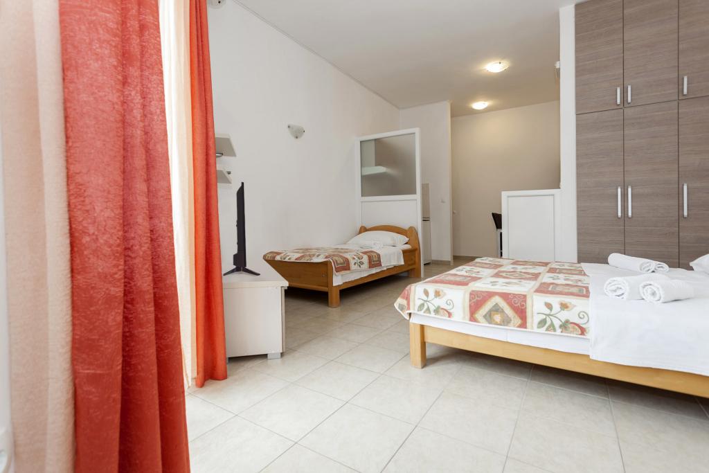 Het appartement is zeer goed uitgerust, ruim, schoon en netjes. Elk appartement heeft een wasmachine. De eigenaar is erg vriendelijk en behulpzaam. De locatie is uitstekend. In de buurt (max 10 min lopen) heeft een aantal stranden, restaurants, winkels. Parkeren voor de deur van de suites, veilige en altijd gegarandeerd. Ons enige probleem was Schrapen bed.