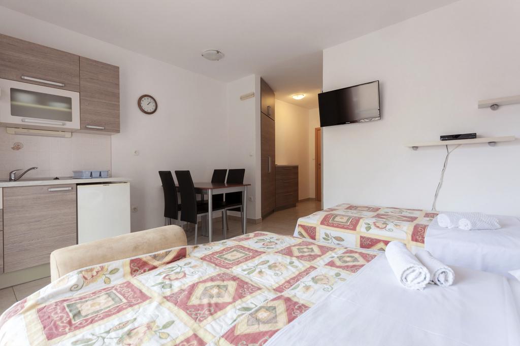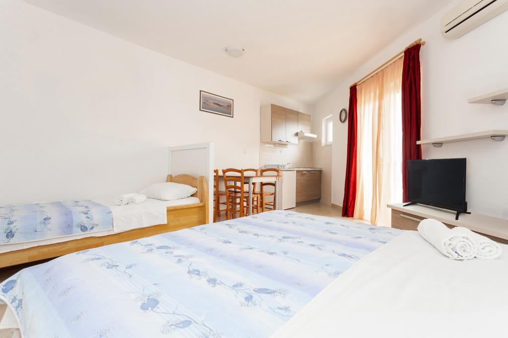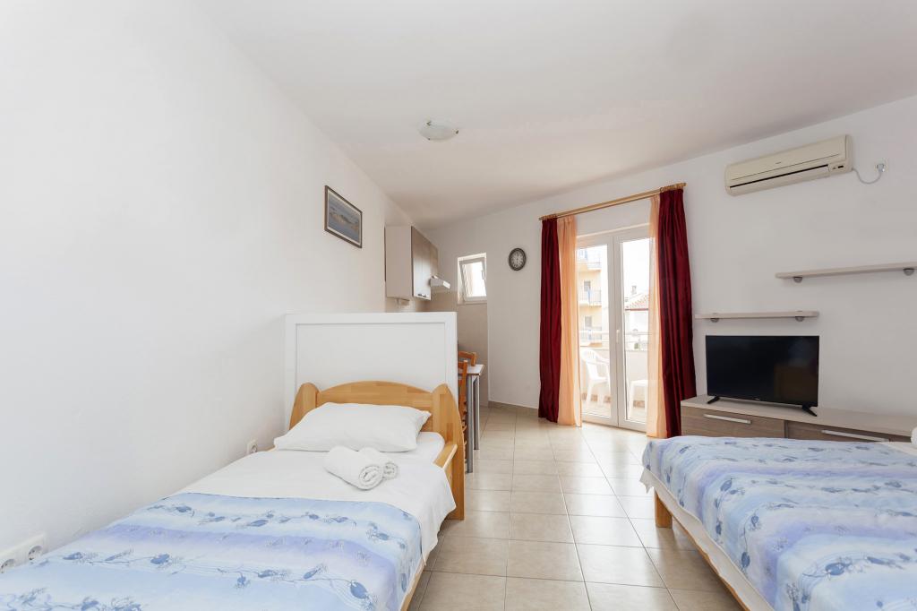 De appartementen op een ideale locatie, omdat overal dicht (2 lange stranden, winkels, inf. Toerist, tankstation, wisselkantoor, apotheek, bakker, slager), terwijl niet een verkeersvrije straat, dus 's nachts is er stilte. Kamers schoon, goed uitgerust met mooie meubels, grote bedden, veel kasten, balokony, zelfs in de badkamer wasmachine. Parkeren voor de deur van het gebouw. Natuurlijk adviseer ik Primosten, zeer lange stranden rondom de landtong, dus zelfs als een heleboel mensen die iedereen genoeg ruimte op het strand voor jezelf te vinden. De appartementen zijn aan te bevelen.