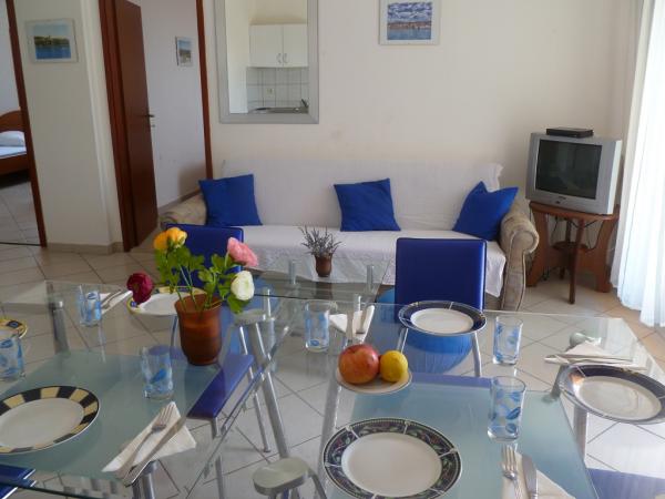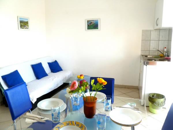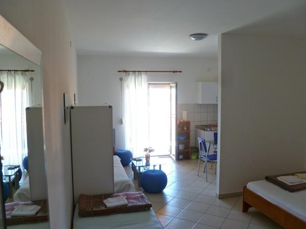 Het appartement was schoon en netjes, het uitzicht vanaf het terras onbeschrijfelijk, 's ochtends koffie met zo'n uitzicht, echt magisch. De baas en zijn broer zijn erg meegaand, aardige mensen. Dicht bij de zee, het centrum, het strand, winkels, apotheken, alles is binnen handbereik. Ik denk dat het voor zo'n betaalbare prijs, gezien de nabijheid en het uitzicht vanaf het terras dat naar beneden komt, echt de moeite waard is om te komen. Wij komen zeker nog een keer!