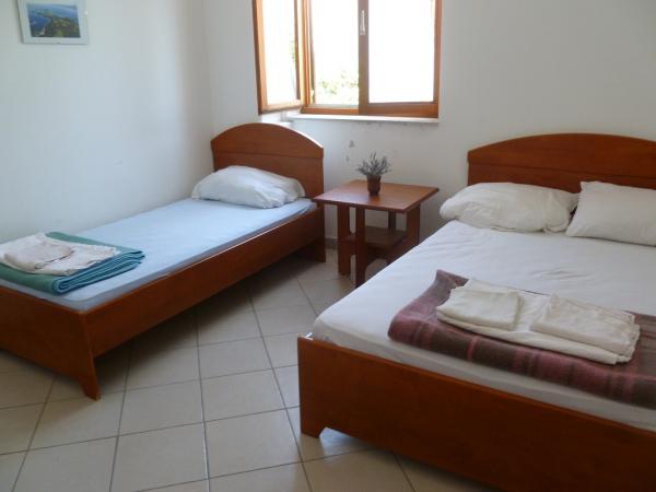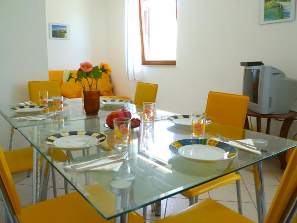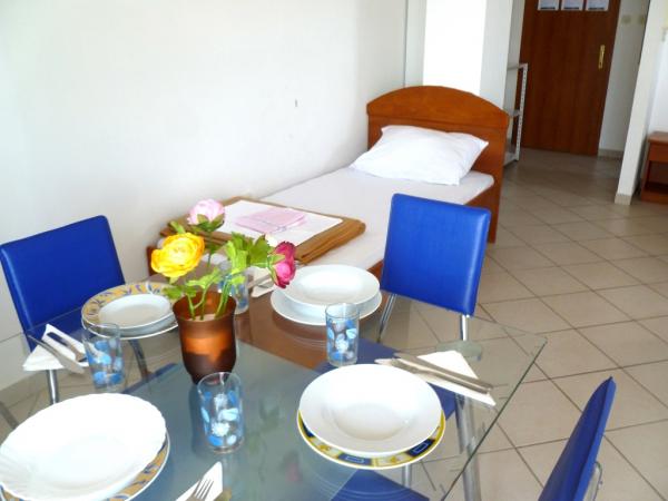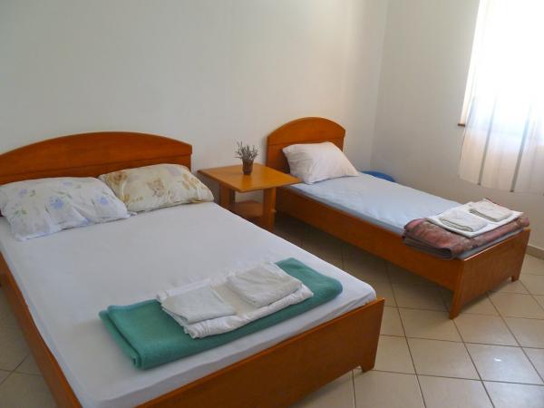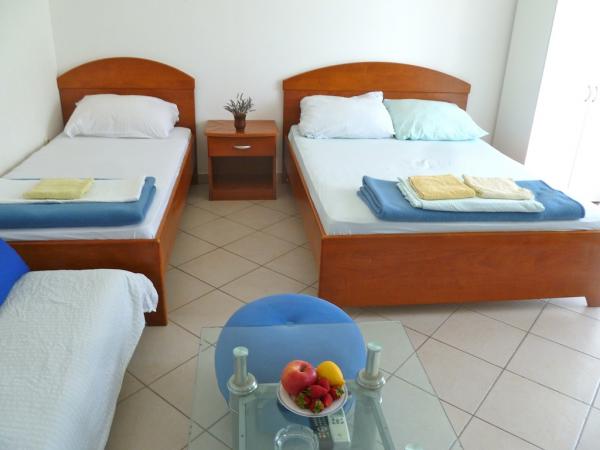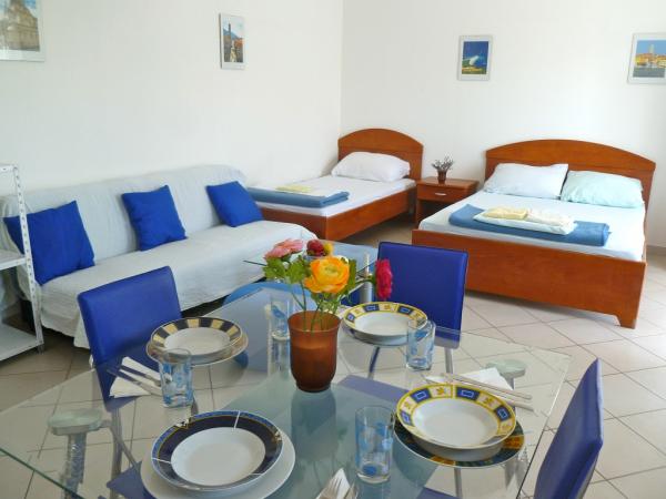 Villa Maria ligt in het centrum van Primosten, van prachtige stranden (kiezels, zand en rots) is 50 - 100 meter. Op de top is een groot terras met een adembenemend panoramisch uitzicht over Primosten en stranden. Villa heeft acht studio's, appartementen met twee slaapkamers; allemaal goed uitgerust en hebben drie sterren, waarmee u comfort en een gezellige thuis. De appartementen zijn uitgerust met een kitchenette, een koelkast, satelliet-tv, schepen met uitzicht op zee. Studio appartementen hebben drie bedden + extra, twee grote suites hebben vijf of zes bedden en twee extra. Elk appartement heeft een eigen parkeerplaats. Winkels, postkantoor, bank, bakker en winkels liggen op 100 meter.
