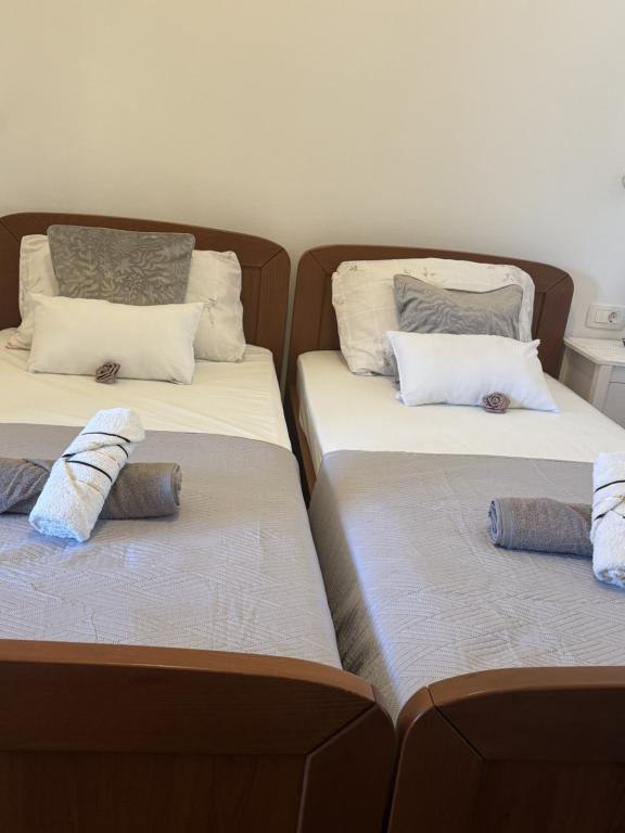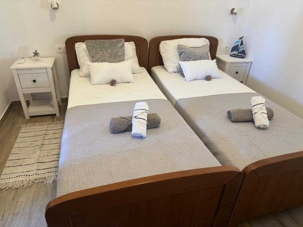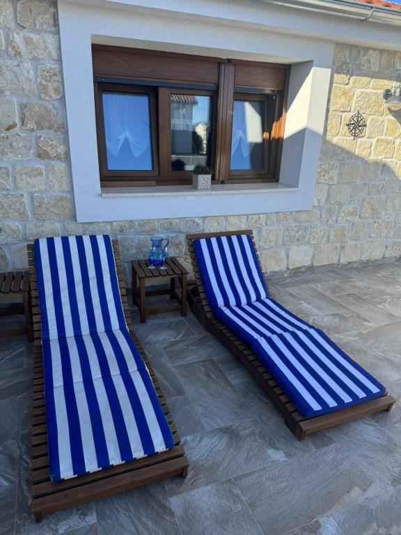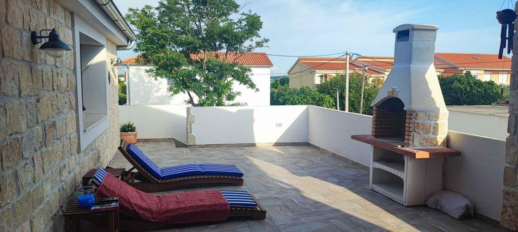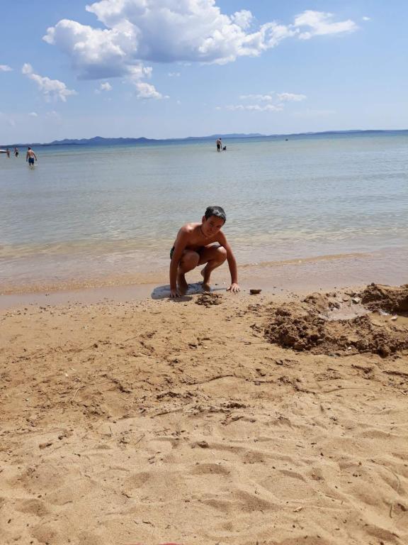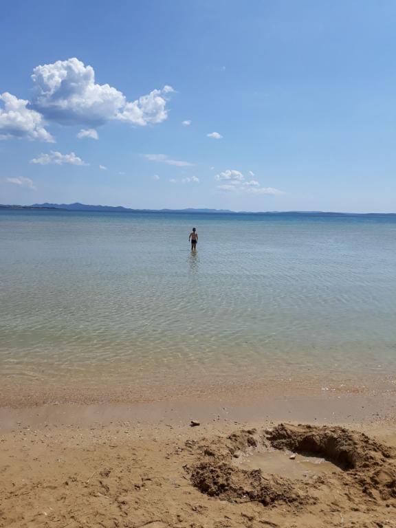 Nieuw ingericht tweekamerappartement in rustieke stijl met keuken, woonkamer en badkamer. Eén kamer heeft een bed van 160x200 en de andere kamer heeft twee bedden van 90x200 en in de woonkamer staat een extra bed (een slaapbank). Beide kamers, keuken en woonkamer zijn voorzien van airconditioning. In elke kamer is een televisie aanwezig. De badkamer heeft een douche en een wasmachine. Het appartement is gelegen op de 1e verdieping, waarvoor zich over de gehele lengte het terras van 50 m2 bevindt, deels overdekt. Op het terras staat een barbecue, ligstoelen, tafel en stoelen... Bij de ingang van het gebouw op de begane grond is er een terras van ca. 30 m2 met een buitendouche op zonne-energie. Het appartement heeft ook drie parkeerplaatsen ervoor de ingang. De omliggende stranden zijn zanderig en ondiep, geschikt voor kleine kinderen en niet-zwemmers, of u kunt genieten van de meer intieme stenen of betonnen zwembaden langs de hele boulevard. Op de eerder genoemde promenade is er een plek waar u het unieke tafereel van de zonsondergang in zee kunt observeren, genieten en fotograferen. In de buurt zijn talloze wandel- en fietspaden, strandbars, bootverhuur, etc., de historische stad Nin met de beroemde geneeskrachtige modder van Nin ligt op ongeveer 3 km afstand, TN Zaton met tal van toeristische attracties ligt op ongeveer 3 km afstand 25 km verderop.