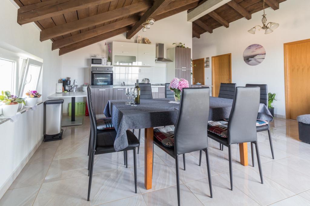 Appartement Tia ligt in het rustige stadje Privlaka, op slechts 600 meter van de zee en de zandstranden, en biedt de perfecte mix van comfort, ruimte en mediterrane charme. Dit ruime appartement van 100 m² is ideaal voor gezinnen en groepen tot 8 personen (7+1) en biedt gasten drie comfortabele slaapkamers, een volledig uitgeruste keuken, een ruime woonkamer en een groot balkon met een prachtig uitzicht op de omliggende natuur. Het appartement is huisdiervriendelijk, dus ook uw huisdieren zijn welkom! Gratis wifi, privéparkeergelegenheid en alles wat u nodig heeft voor een zorgeloze vakantie staan tot uw beschikking. Geniet van de stilte, het groen en de frisse lucht, terwijl u zich op een ideale locatie bevindt - op slechts 2 km van het historische stadje Nin en op 25 km van Zadar, een stad met een rijk cultureel en gastronomisch aanbod.