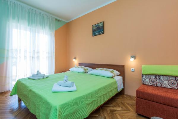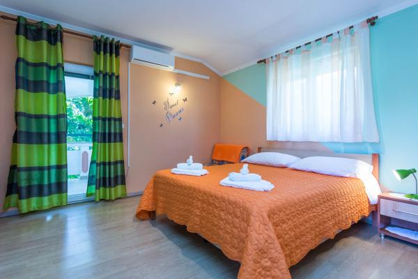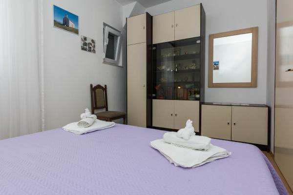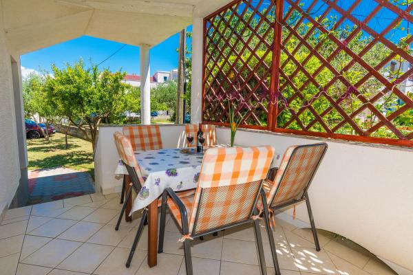 Volledig ingerichte appartementen in een rustige buurt van Privlaka, op 300 m van de zee, met een grote tuin. De appartementen hebben twee grote slaapkamers, badkamer, keuken, groot terras en balkon. Voor het huis is een dennenbos, vlakbij het busstation.