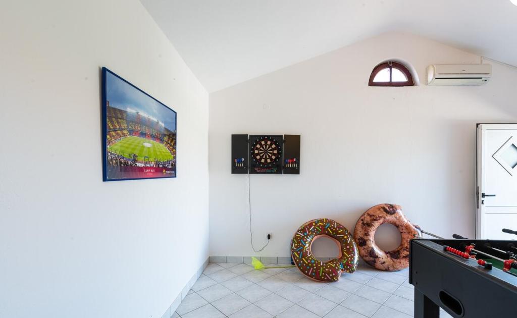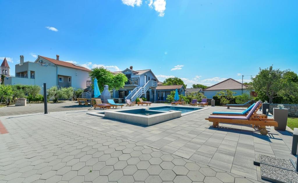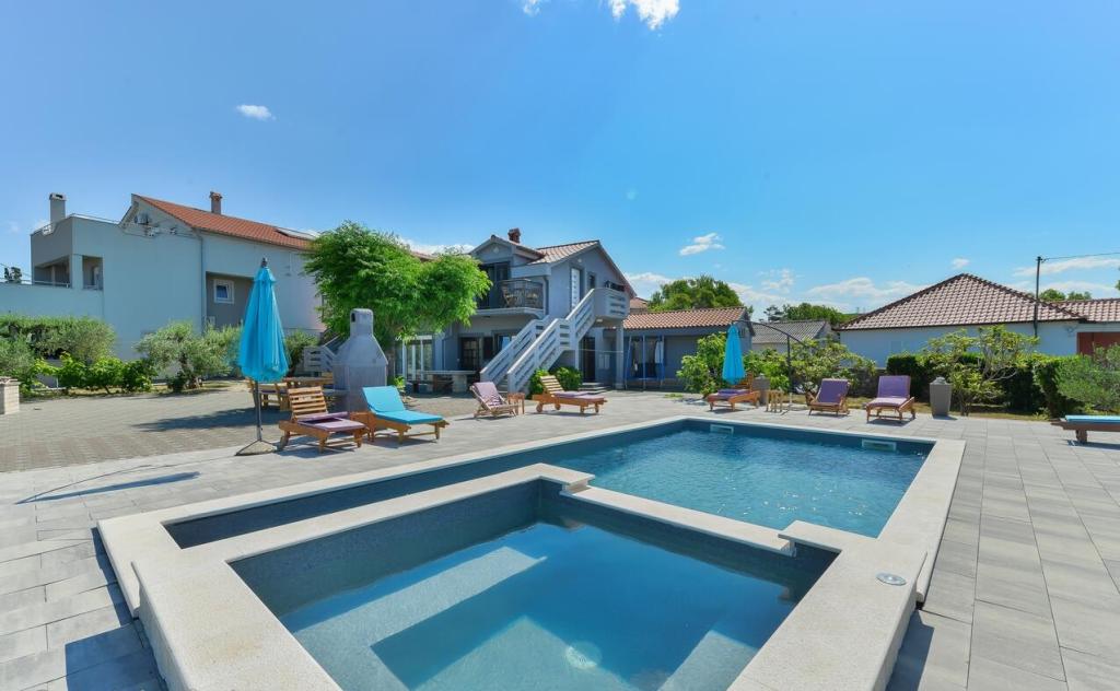 De appartementen bevinden zich op 300 m van de zee. Ze zijn gelegen op een rustige plek, omgeven door olijfbomen, zwembad, jacuzzi, grill, speelkamer met darts en tafelvoetbal. Grote tuin, omheind...