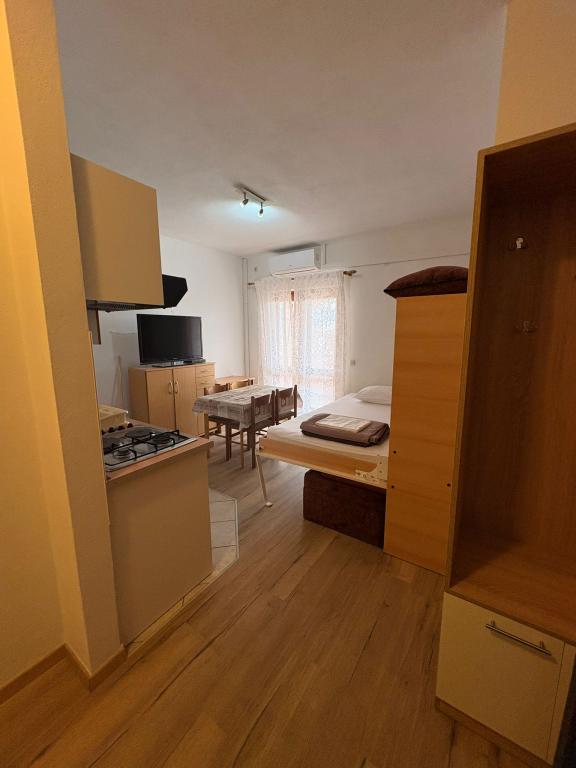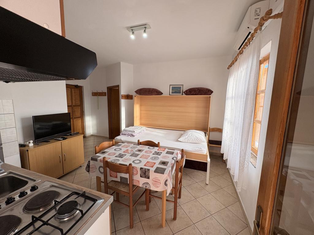 Op ons terrein hebben we voor elk appartement een verharde, overdekte parkeerplaats gereserveerd. We hebben ook parkeergelegenheid voor meerdere auto's per appartement. In het bijgebouw hebben gasten toegang tot een taverne waar ze kunnen socialiseren en eten bereiden met de nodige eetbenodigdheden. Het zwembad, dat aan twee kanten overloopt en is uitgerust met twee soorten watermassages, is beschikbaar voor gasten van 08:00 tot 22:00 uur. Ligstoelen en parasols zijn bij de prijs van het appartement inbegrepen. Een vast zonnescherm van 12 meter lang biedt veilige bescherming tegen de zon. Twee fitnessapparaten zijn beschikbaar voor gasten van 08:00 tot 22:00 uur en zijn bij de prijs van het appartement inbegrepen. De wasmachine bevindt zich in het bijgebouw en is beschikbaar voor gasten van 08:00 tot 22:00 uur en is bij de prijs van het appartement inbegrepen. De gastheren staan altijd klaar om te helpen met het bereiden van eten op de barbecue.