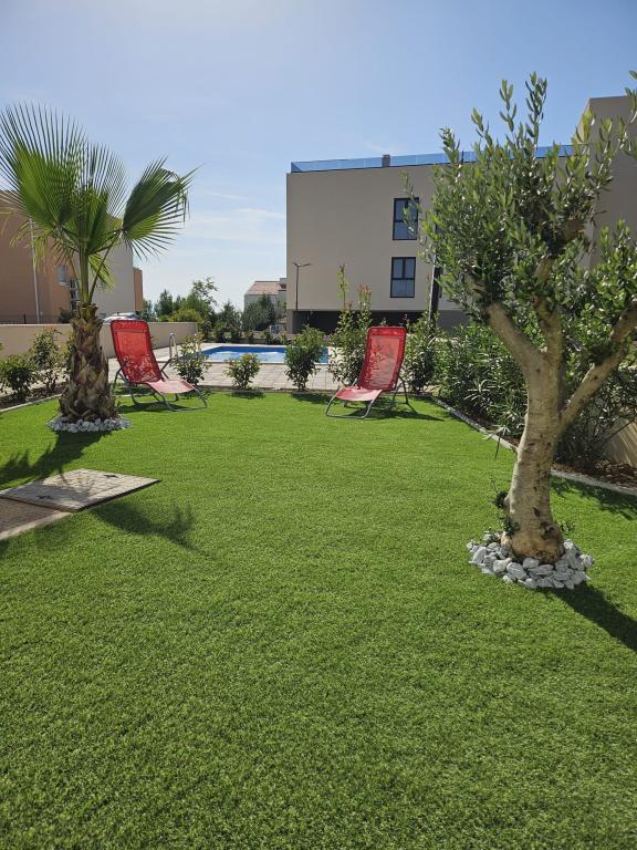 Geniet van een perfecte vakantie in Appartement Oleander en Appartement Lapis in Privlaka, vlakbij Zadar. Deze modern ingerichte en volledig uitgeruste appartementen liggen op slechts 80 meter van de zee en bieden de ideale omgeving om te ontspannen, of u nu met familie of vrienden komt. De combinatie van comfort, functionaliteit en een rustige mediterrane sfeer zorgt voor een zorgeloos verblijf en een echte ontsnapping aan de dagelijkse sleur. Geniet van de nabijheid van prachtige stranden, een privéterras voor een kopje koffie in de ochtend, een verfrissende duik in het zwembad en de gemakkelijke toegang tot het charmante Nin en het pittoreske Zadar.