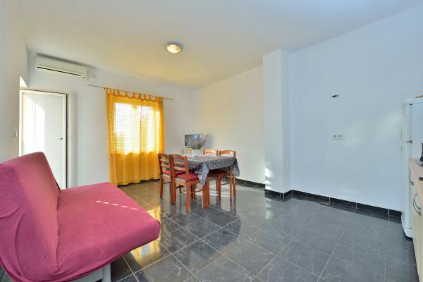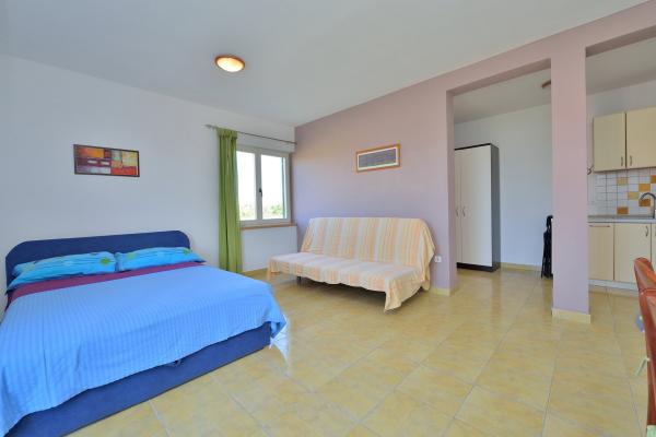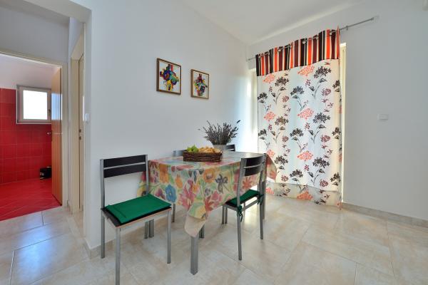 Eigenaar behulpzaam. Appartementen uitgerust met alles wat nodig is. Het strand ligt relatief dichtbij het centrum en de haven, ongeveer 1,5 km. Dichtbij de plek waar de buren fruit, groenten, vis en wijn verkopen. Helaas is het verre van grotere winkels. Maar ze bouwen een grote winkel op ongeveer 200 meter van het huis, dus het zal beter zijn. Ik raad deze plek aan voor de prijs en netheid van de kamers. Het is geschikt als uitvalsbasis dichtbij Vir, Nin en Zadar en relatief dichtbij Pag