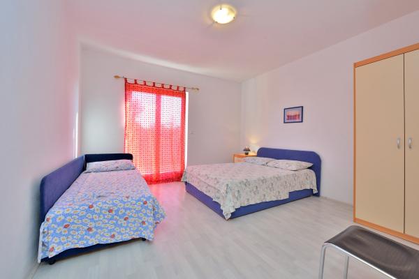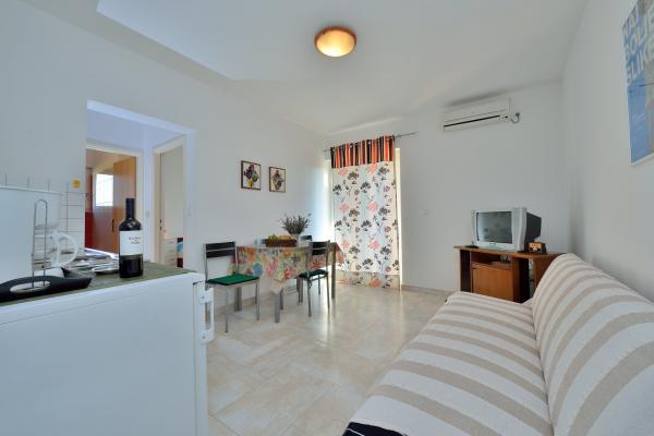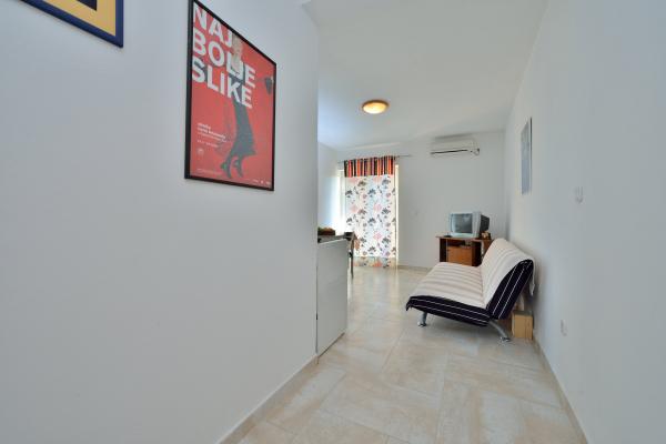 We brachten de eerste vakantie door in het 7+2 appartement van meneer Scoblar tussen 20 en 27 augustus. Het was geweldig. Het appartement was schoon, met ruime woonkamer, zeer goed uitgeruste keuken en badkamer. De heer Skoblar was erg aardig en behulpzaam. Hij installeerde voor ons opritten voor rolstoeltoegang tot alle kamers. Hartelijk dank hiervoor nogmaals. Het strand was een zandstrand en niet te ver van het appartement. Het was niet druk, met warm en schoon water.