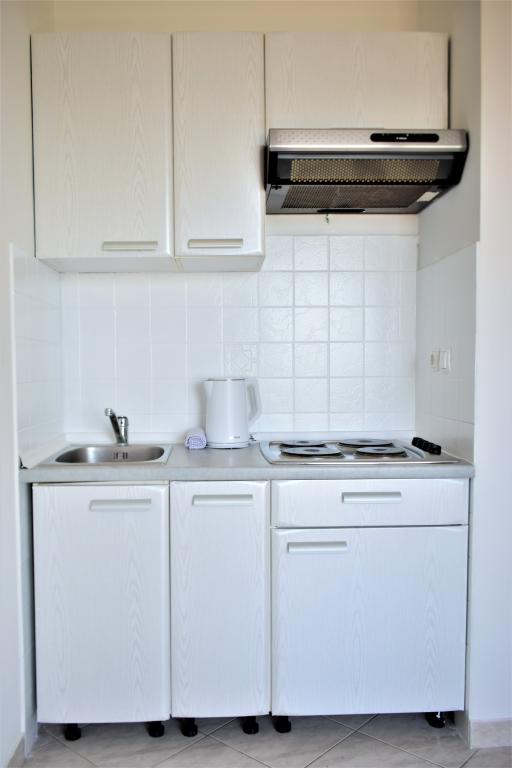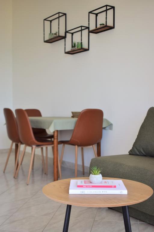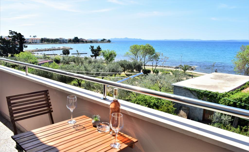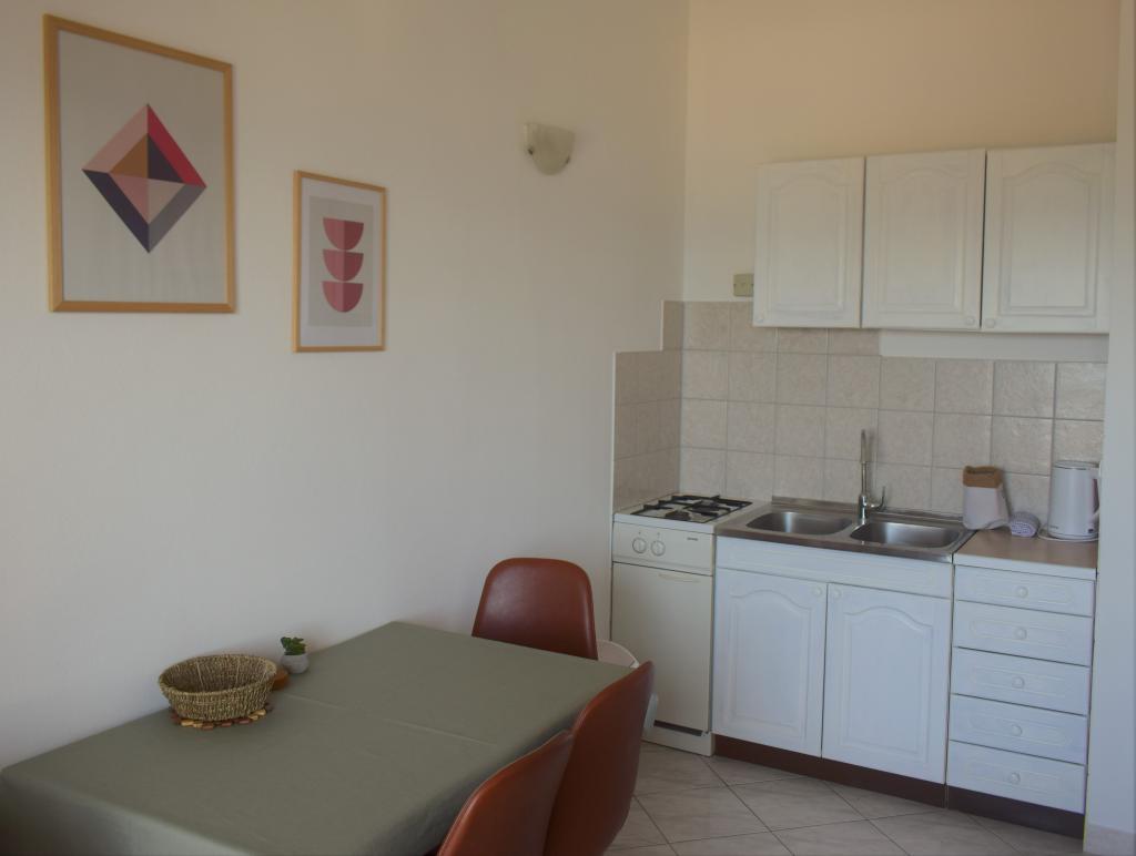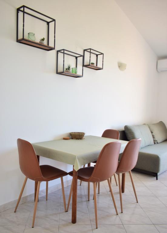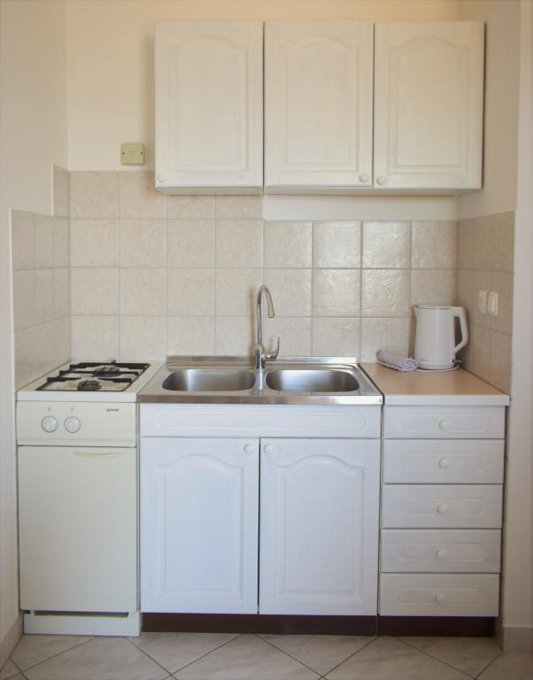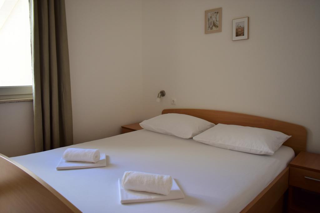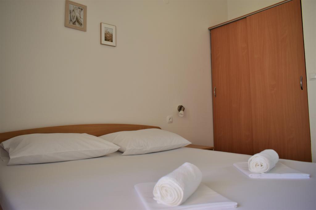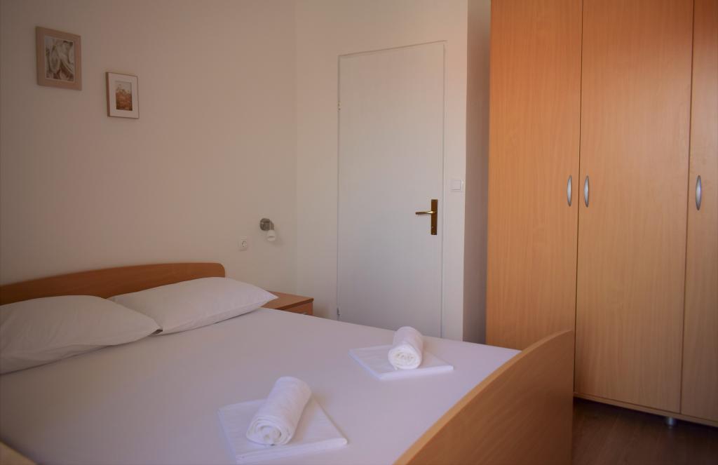 Aangename appartementen in een rustige omgeving, gelegen op de eerste rij aan zee. De faciliteit bevindt zich op 10 minuten lopen van alle noodzakelijke voorzieningen voor een aangename vakantie, zoals een winkel, apotheek, kliniek, postkantoor, enz. Het strand bevindt zich in de directe omgeving van de faciliteit, op slechts 50 meter afstand. De faciliteit biedt ook parkeergelegenheid en de appartementen zelf bevinden zich op de tweede verdieping van de faciliteit, vanwaar u kunt genieten van een prachtig uitzicht op de zee en de eilanden.