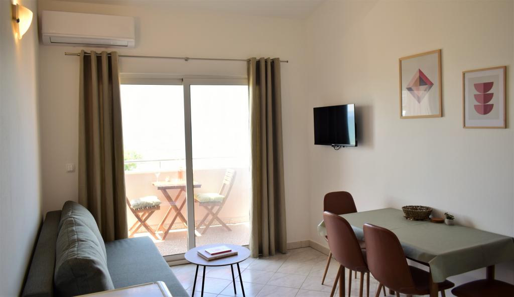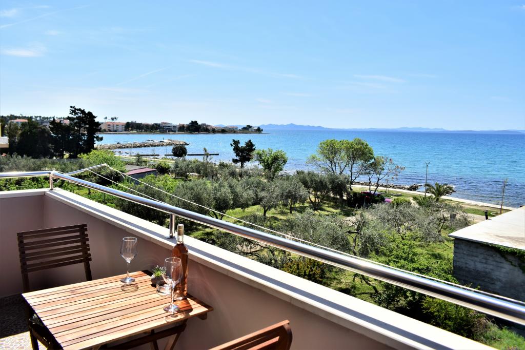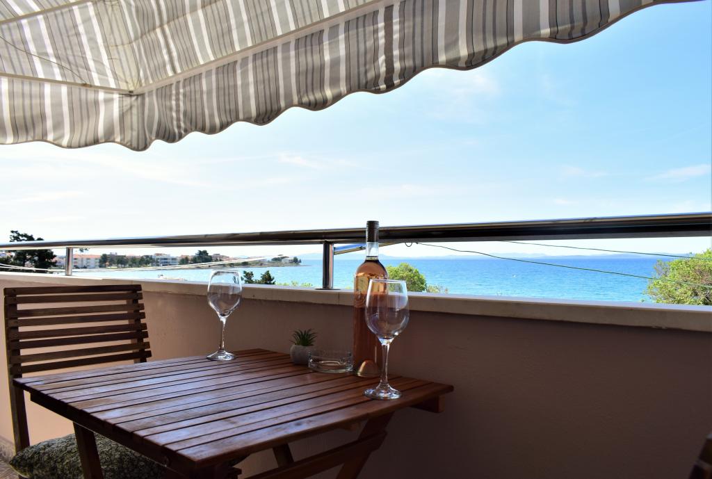 Appartement met een prachtig uitzicht op de zee. Vriendelijke gastheren. Strand direct onder het appartement, zandstrand 2 minuten lopen. Cafés, fastfoodrestaurants en restaurants liggen naast het strand.